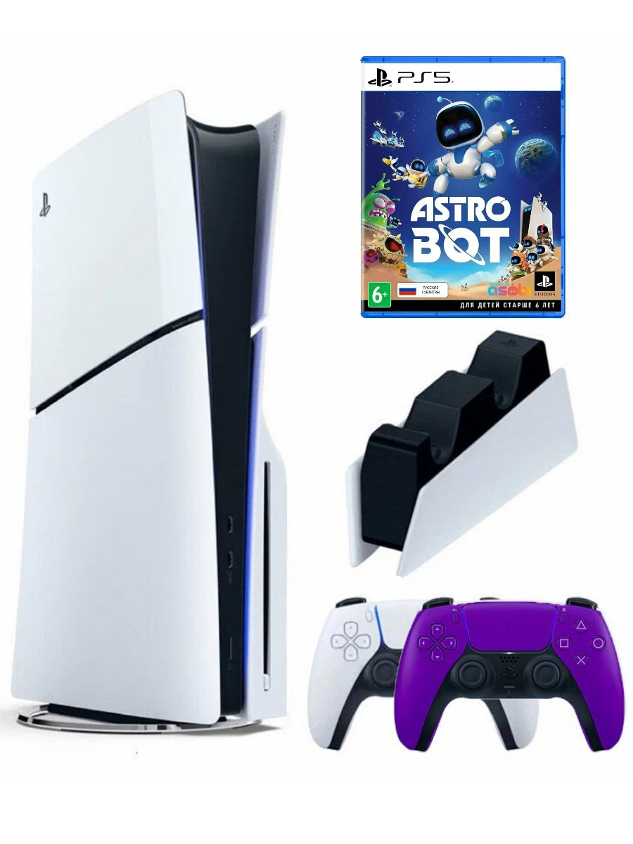 10 цен на Игровая приставка Sony PlayStation 5 Slim, 1ТБ(с дисководом), 2й геймпад фиолетовыйй + зарядная станция + игра Astro Bot