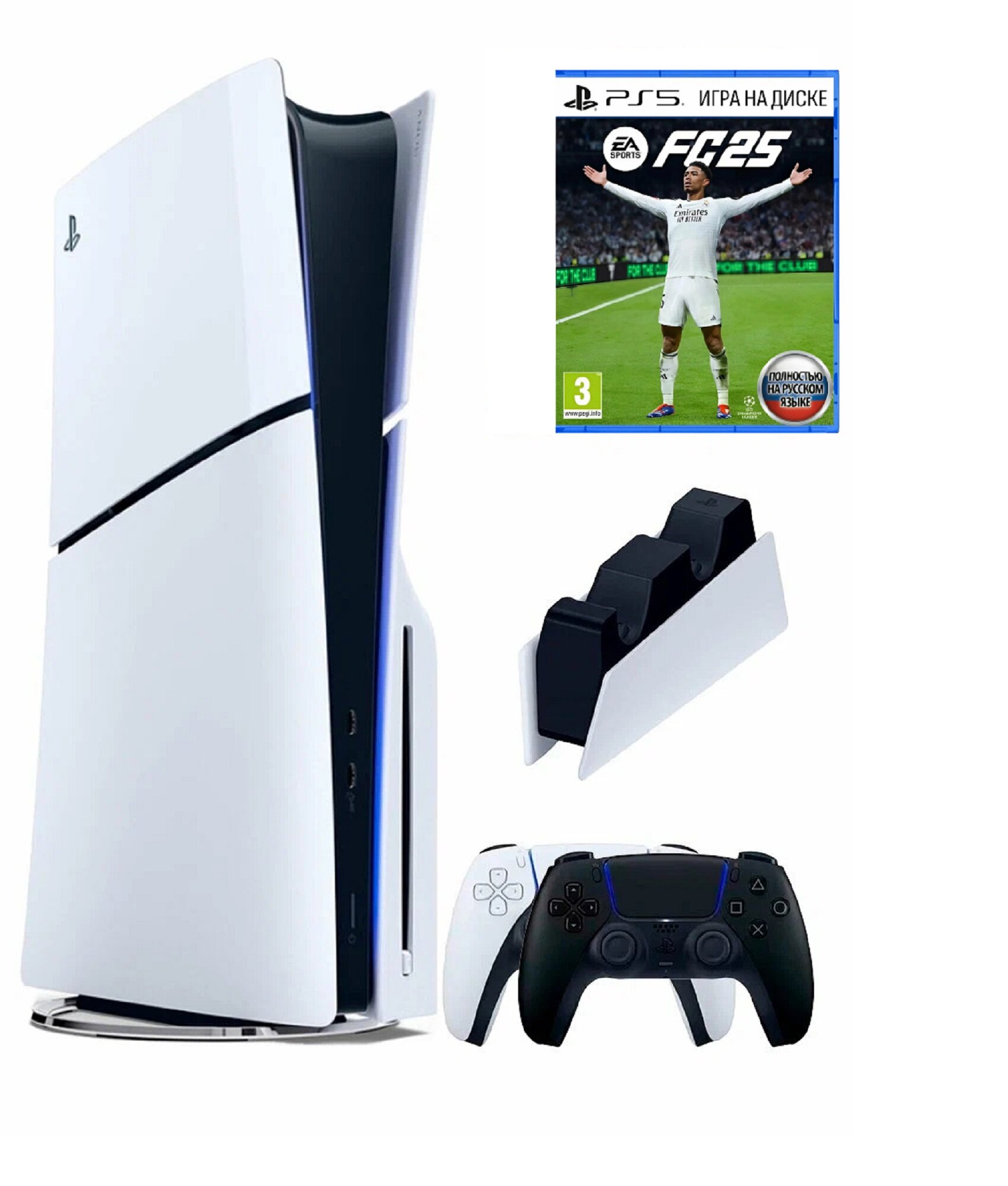 10 цен на Игровая приставка Sony PlayStation 5 Slim disc + 2й геймпад (черный) + зарядное + игра FC25
