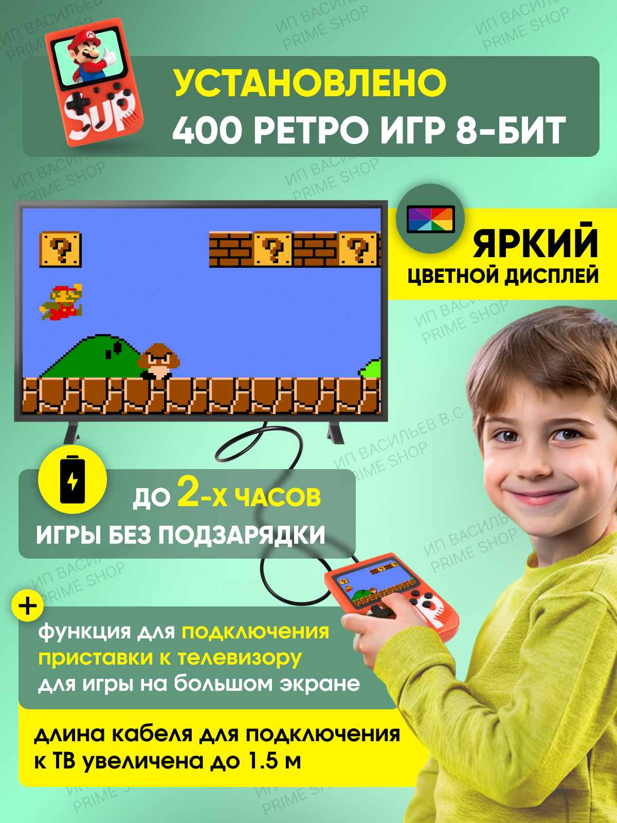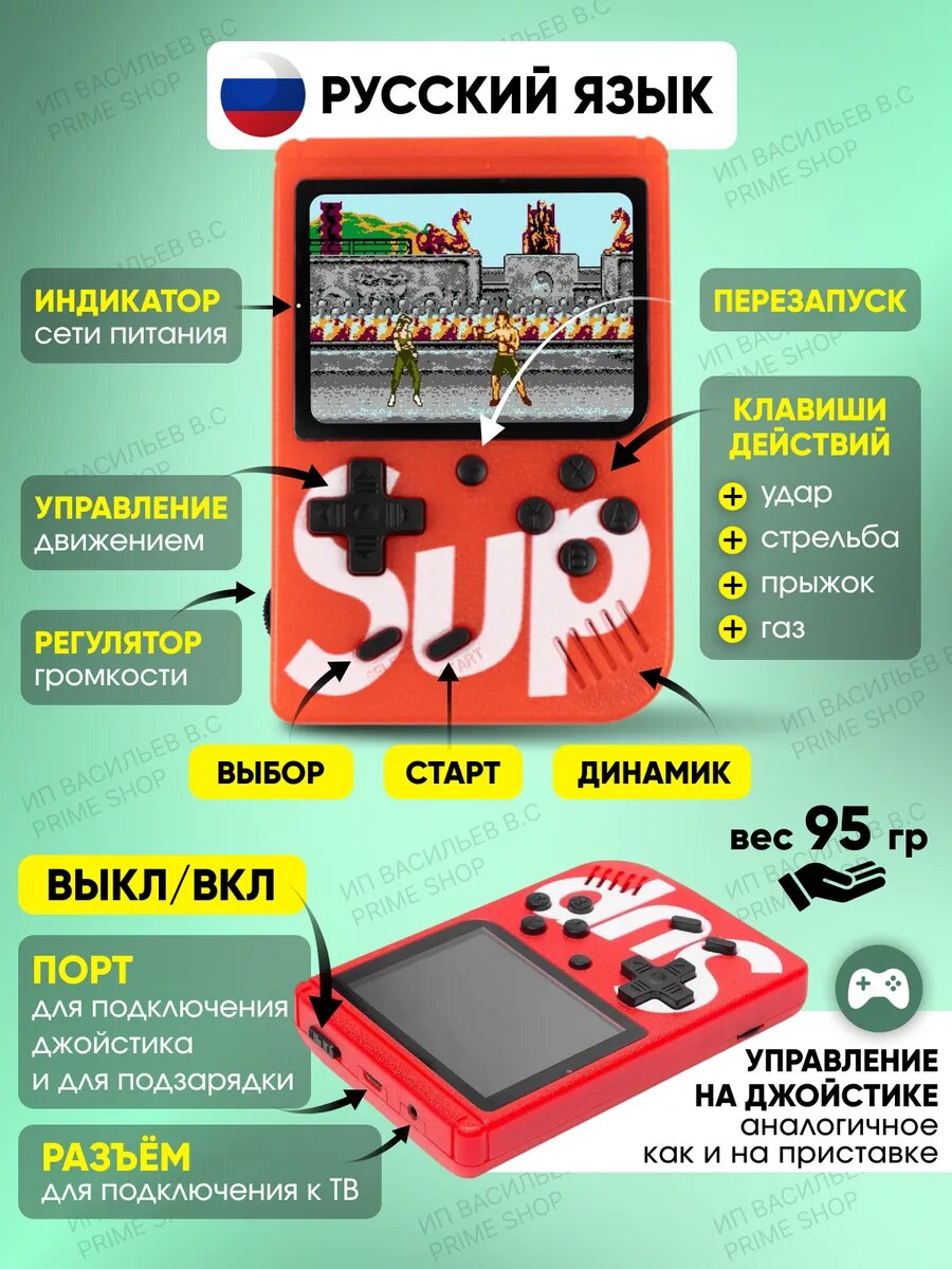 Игровая приставка SUP GAME BOX, 400 предустановленных игр, красная информация: