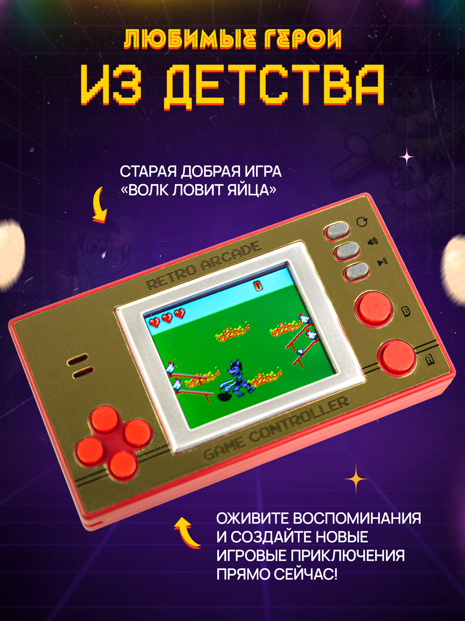Игровая консоль Super01 "Волк Ловит Яйца", портативная, 1.8" информация: