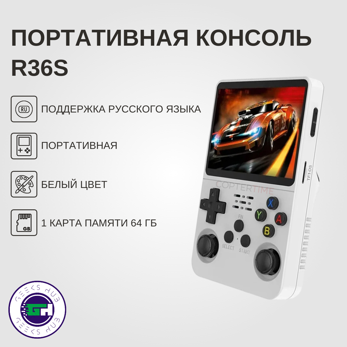 Портативная игровая консоль R36S, 64ГБ, белый информация: