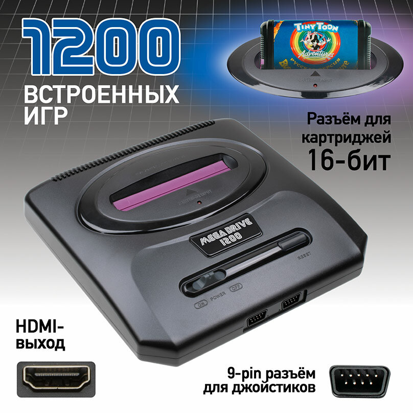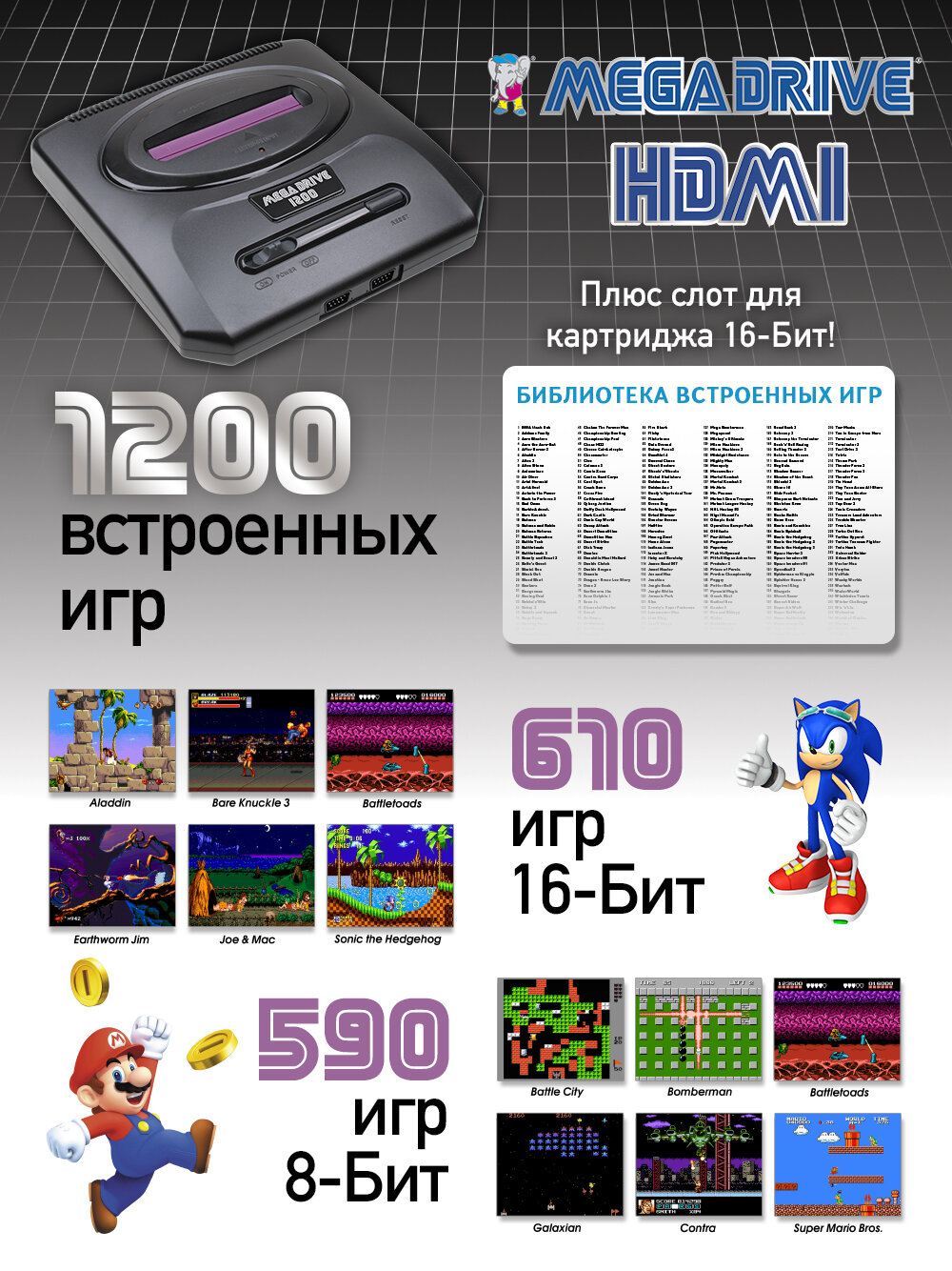 Игровая приставка 8- и 16-бит (Dendy и Sega) Mega Drive с 1200 встроенных игр / Ретро консоль Денди с двумя джойстиками информация: