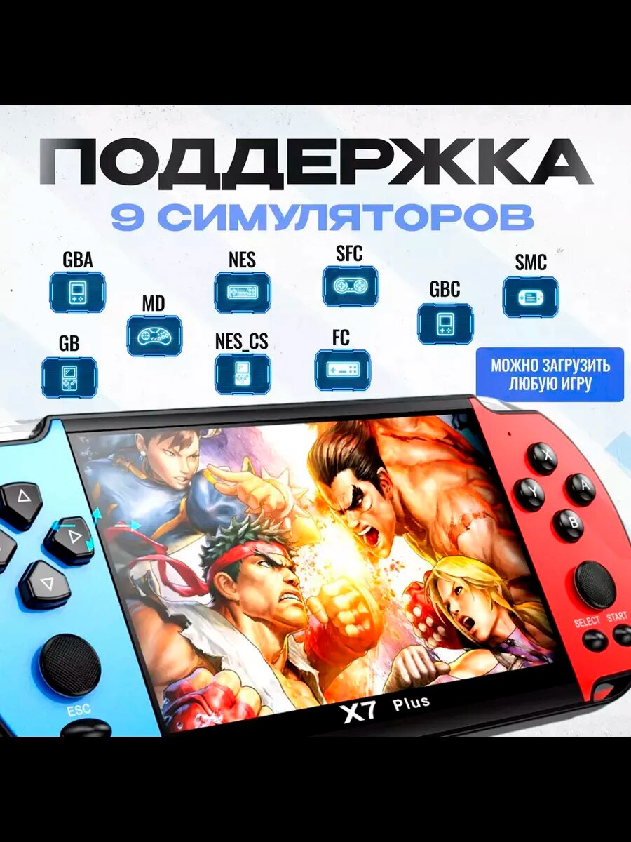 Игровая приставка портативная X7 Plus HD, эмуляторы денди и ретро консолей, 5,1 HD экран, более 10000 игр, сине-красная информация: