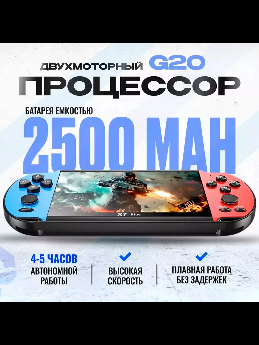 Отзывы на Игровая приставка портативная X7 Plus HD, эмуляторы денди и ретро консолей, 5,1 HD экран, более 10000 игр, сине-красная