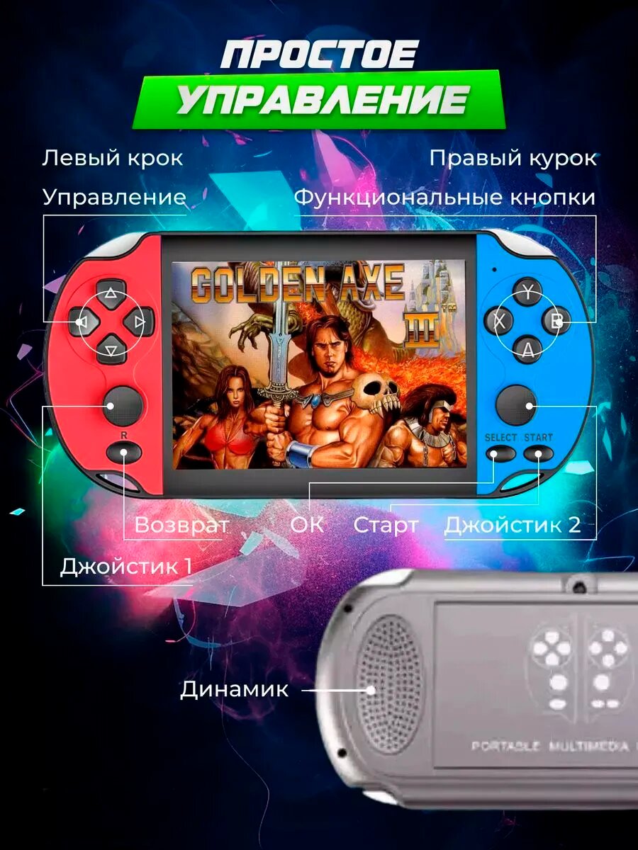 Игровая приставка портативная X7 Plus HD, эмуляторы денди и ретро консолей, 5,1 HD экран, более 10000 игр, сине-красная 3 430 ₽