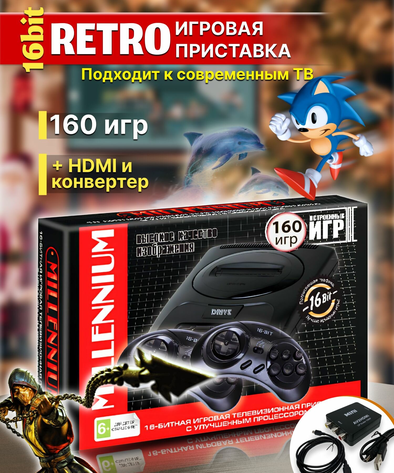 Ретро игровая приставка для телевизора SEGA 16bit SuperDrive "MILLENIUM" c HDMI и конвертером, 160 встроенных игр, подходит для современных тв информация: