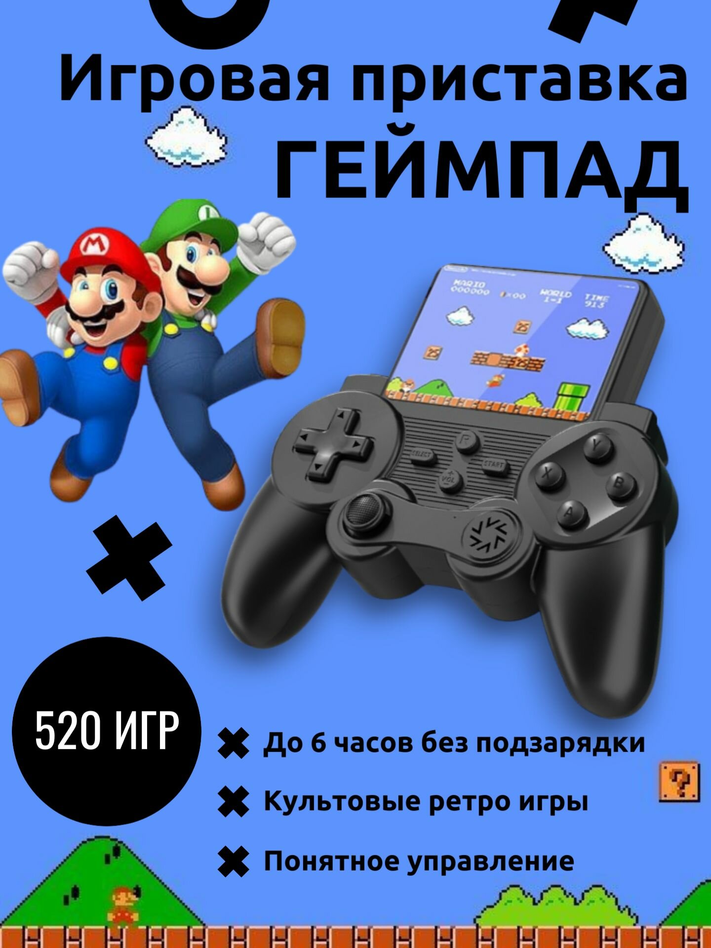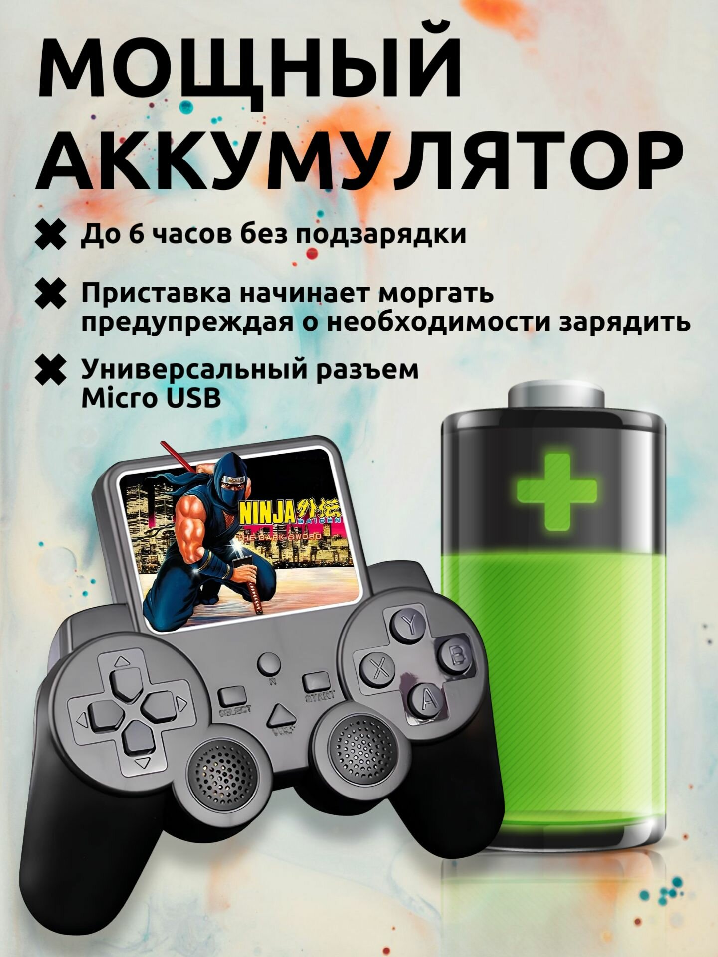 Игровая приставка беспроводная геймпад 520 ретро игр, 3 дюйма экран, черный информация: