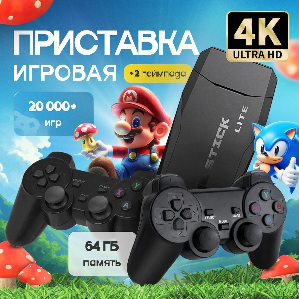 Игровая приставка, консоль Game Stick Lite 64Gb, 3555 игр, 4K, 2,4 ГГц, 8 бит, 16 бит, 32 бит