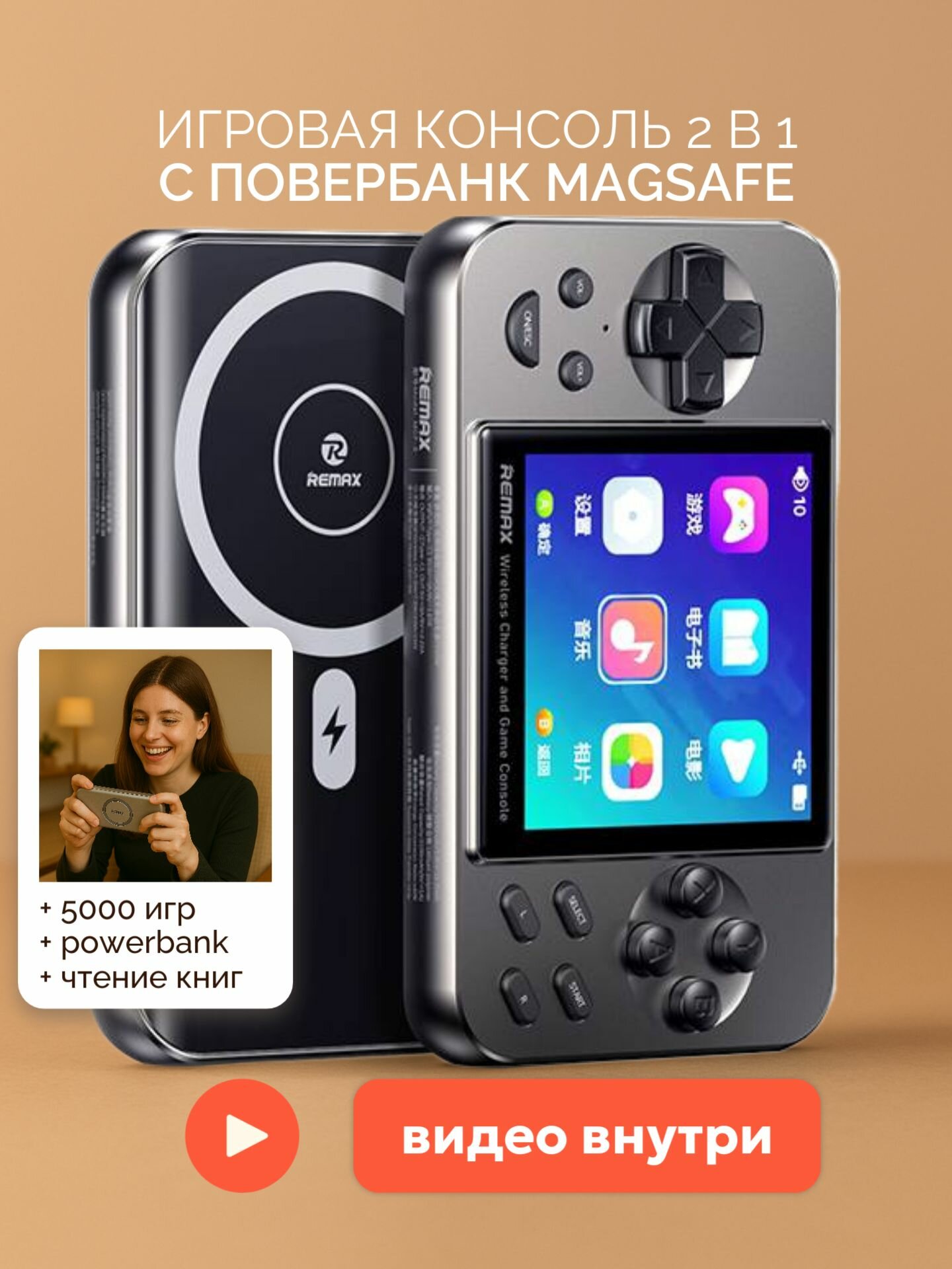 Отзывы на 2 в 1 Портативная игровая приставка + повербанк magsafe 5000 мАч, 10 эмуляторов, беспроводная зарядка 15 В