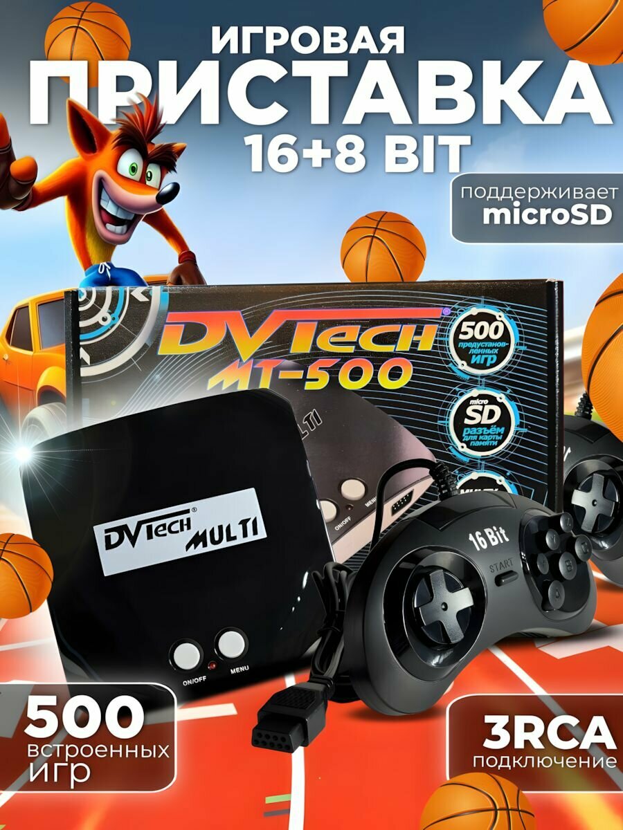 Игровая приставка мультиплатформенная DVTech MT 500 игр (8bit и 16bit), SD поддержка карт памяти, игровая консоль для телевизора информация:
