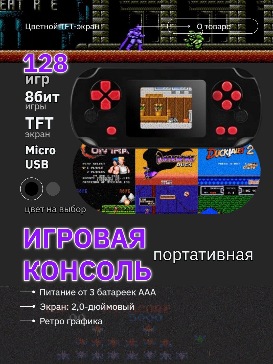 10 цен на Игровая консоль, 128 встроенных игр, TFT-экран, портативная, черная
