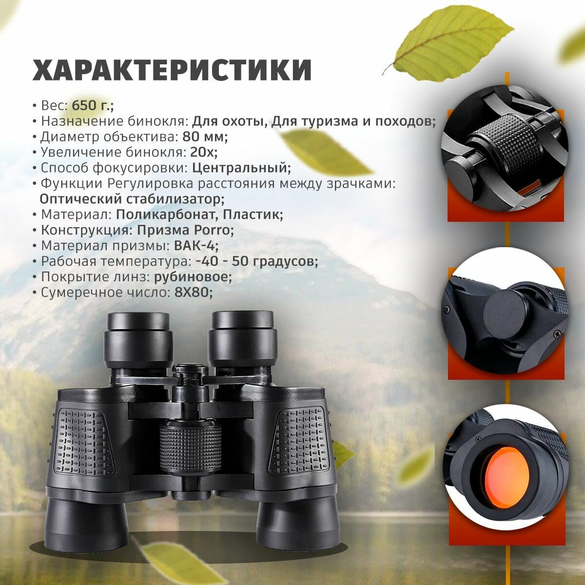 Охотничий бинокль EGP PROever 80x80 168М/1000м с рубиновым покрытием информация: