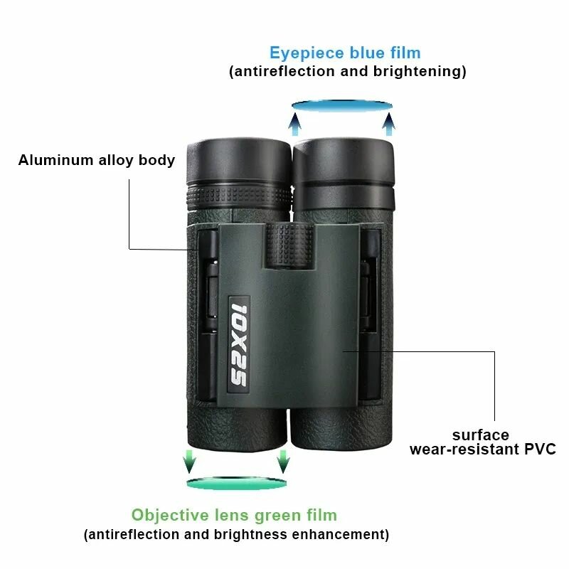10 цен на Мини-бинокль 10x25 / 8x25 Телескоп HD хорошего качества 5000 м Охота Кемпинг Водонепроницаемый