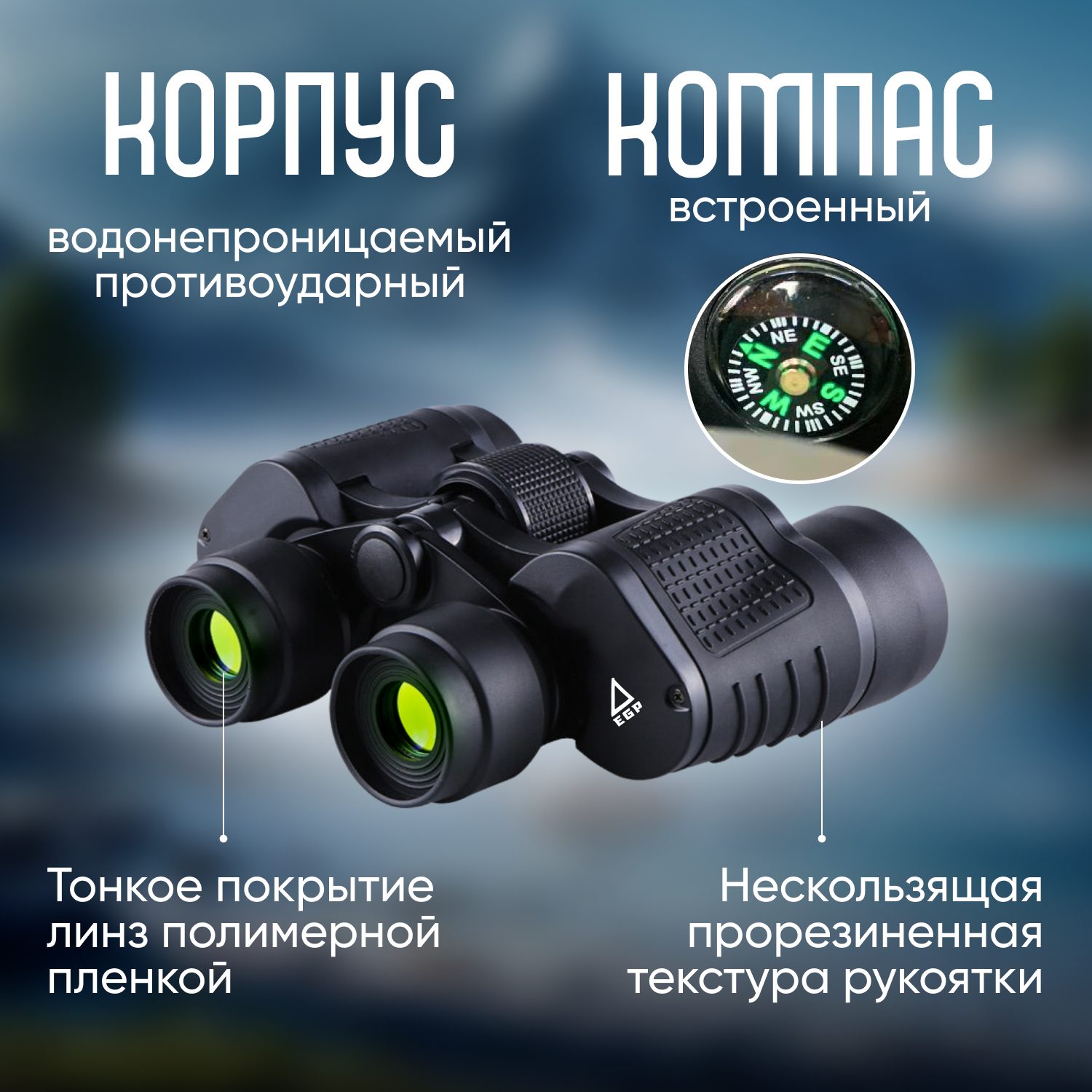 Спортивный бинокль EGP-Странник 80x80 168М/1000м с компасом и антибликовым покрытием информация: