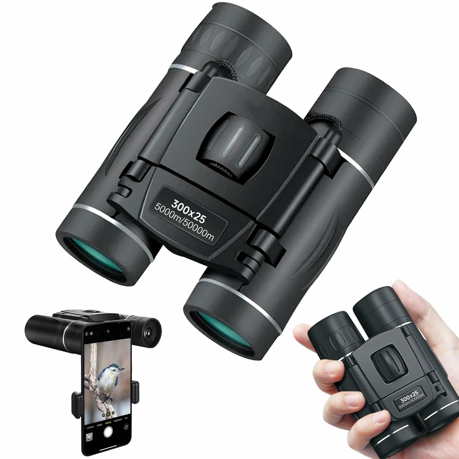10 цен на Бинокль 300x25 для взрослых и детей, мощный карманный мини-бинокль с телефонным адаптером, водонепроницаемый компактный бинокль