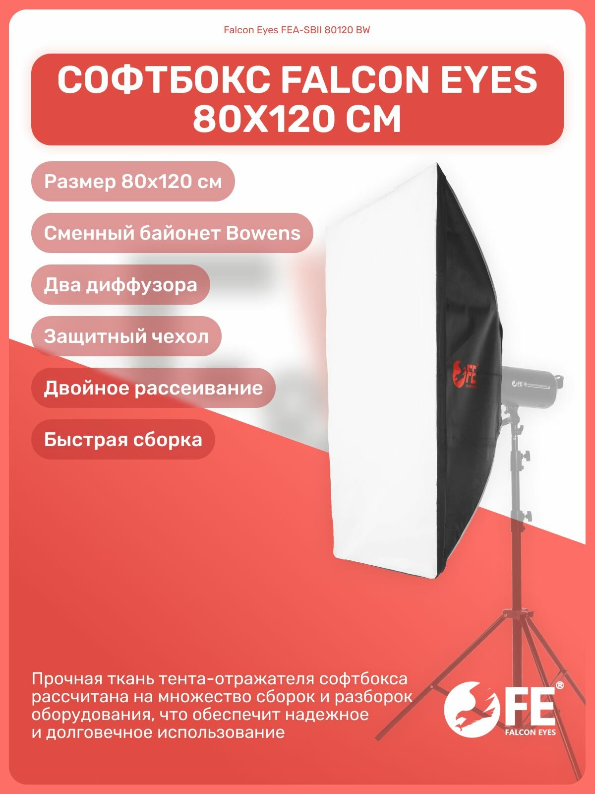 Софтбокс 80х120 см. Falcon Eyes FEA-SBII 80120 BW, свет для фото и видео съемок, студийное оборудование информация: