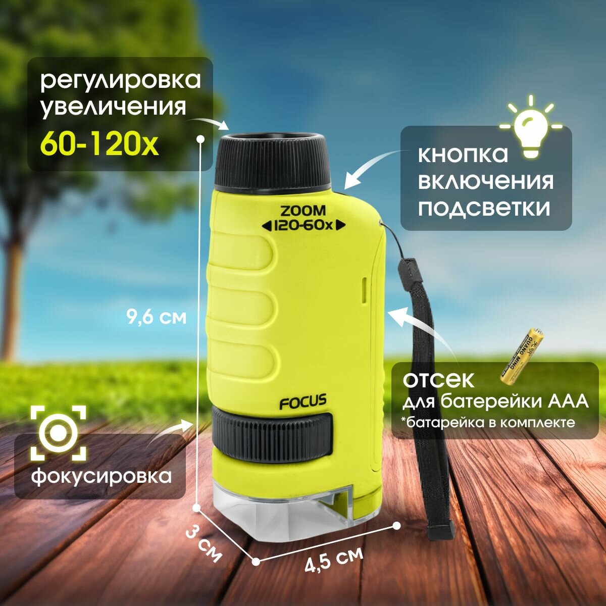 Микроскоп детский, карманный, с набором для исследований 60-120х-01 информация: