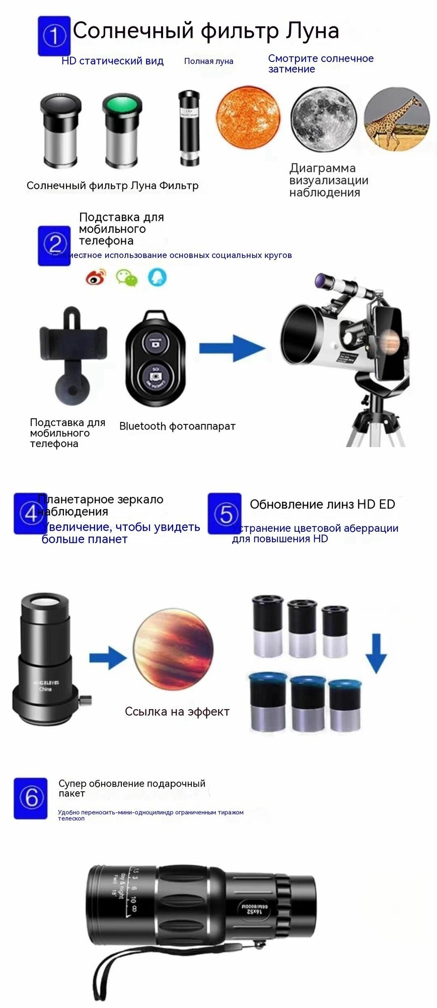 Отзывы на Астрономический телескоп 100000x / полностью автоматический поиск звезд / сверхбольшая апертура 114 мм
