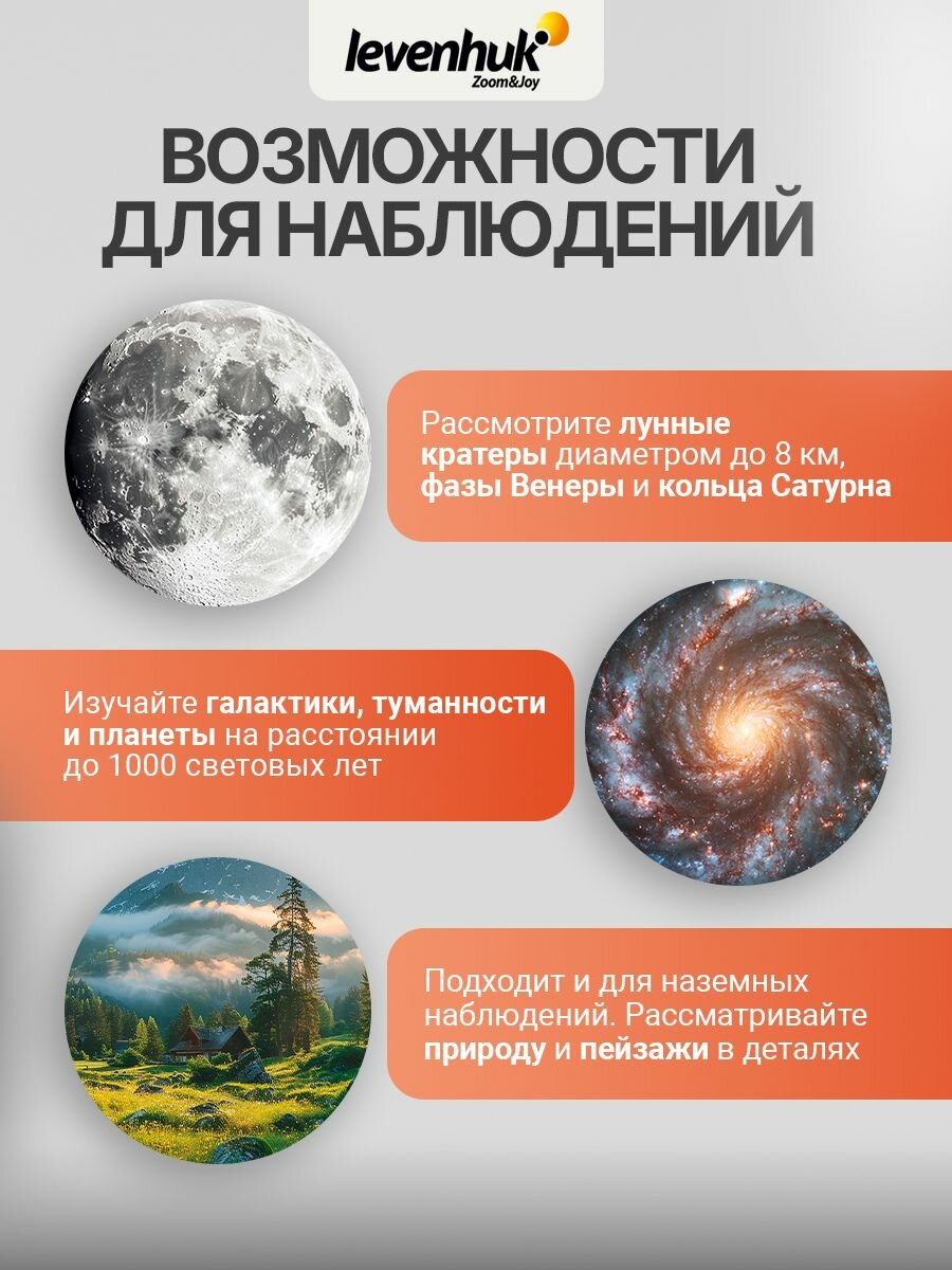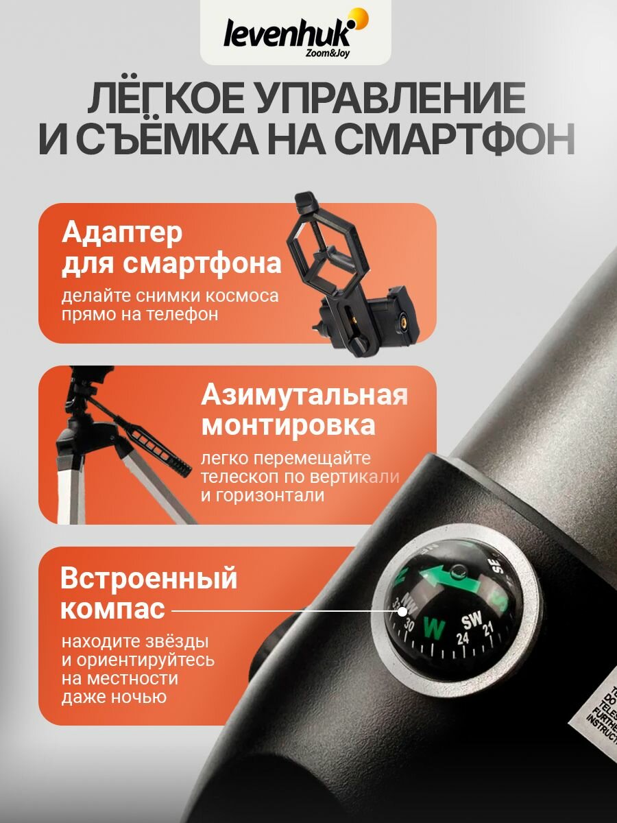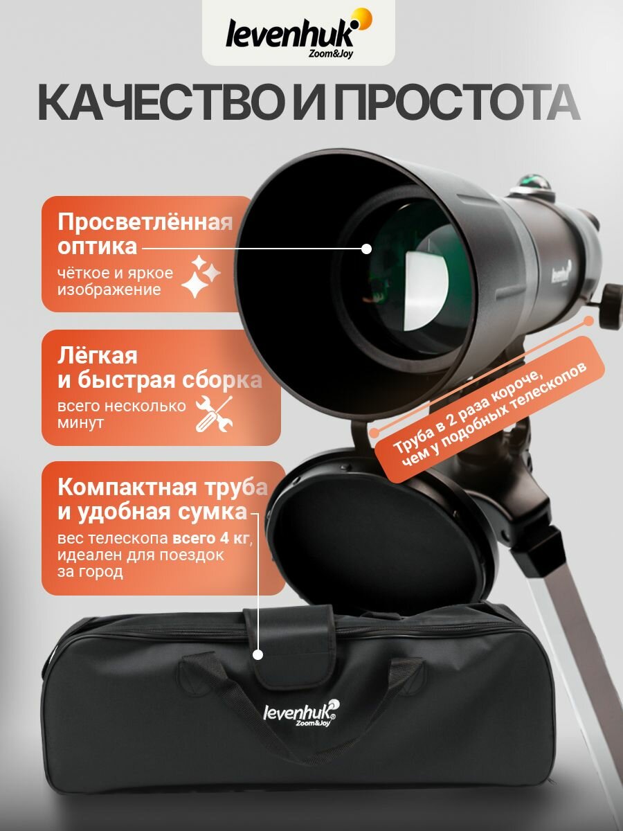 Телескоп Levenhuk Point TDS80 для начинающих астрономов с книгой и адаптером в подарок информация: