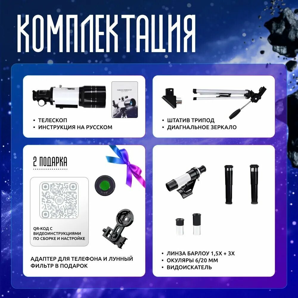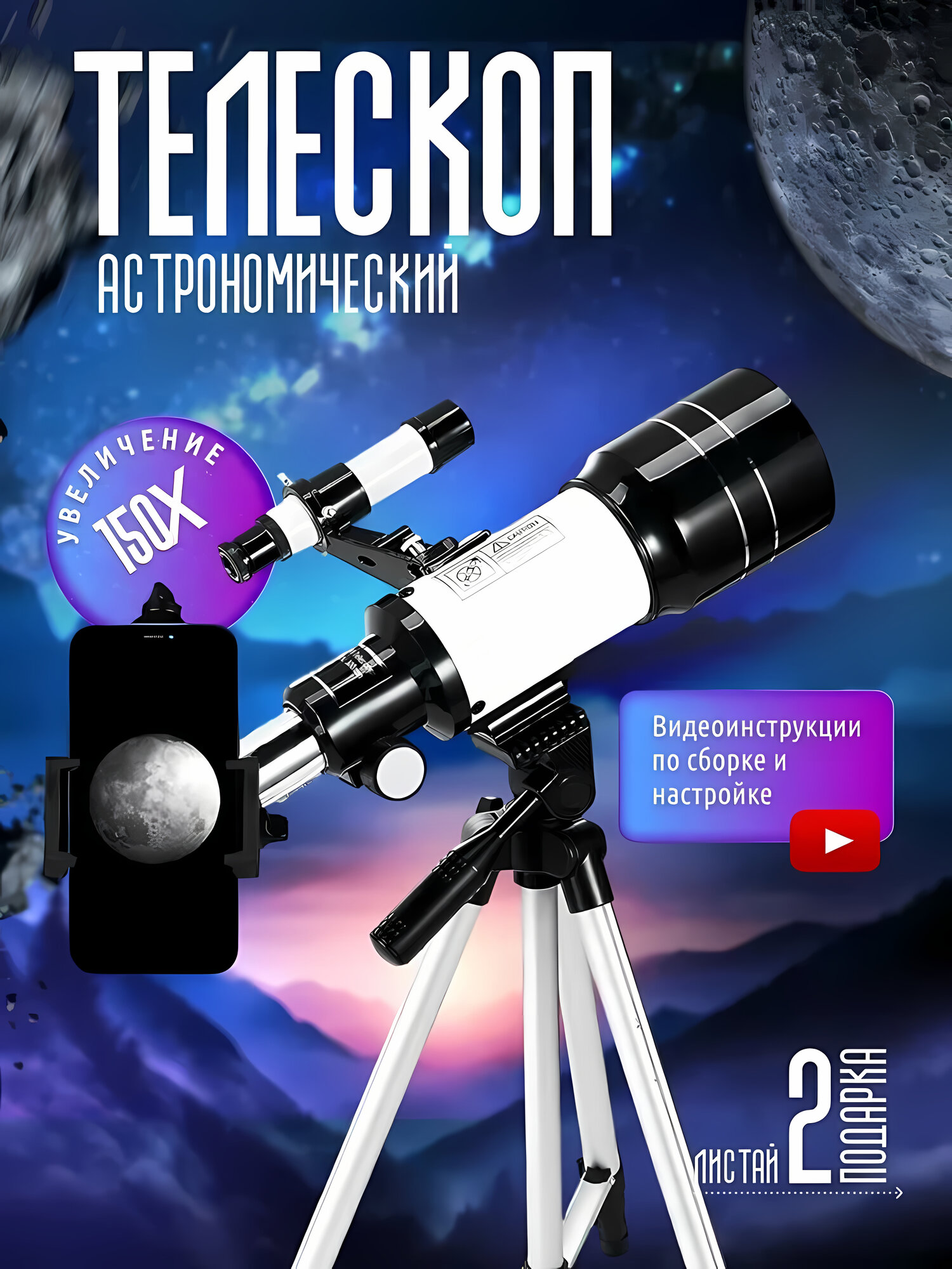 Телескоп астрономический F30070 150х с видеоискателем для начинающих информация: