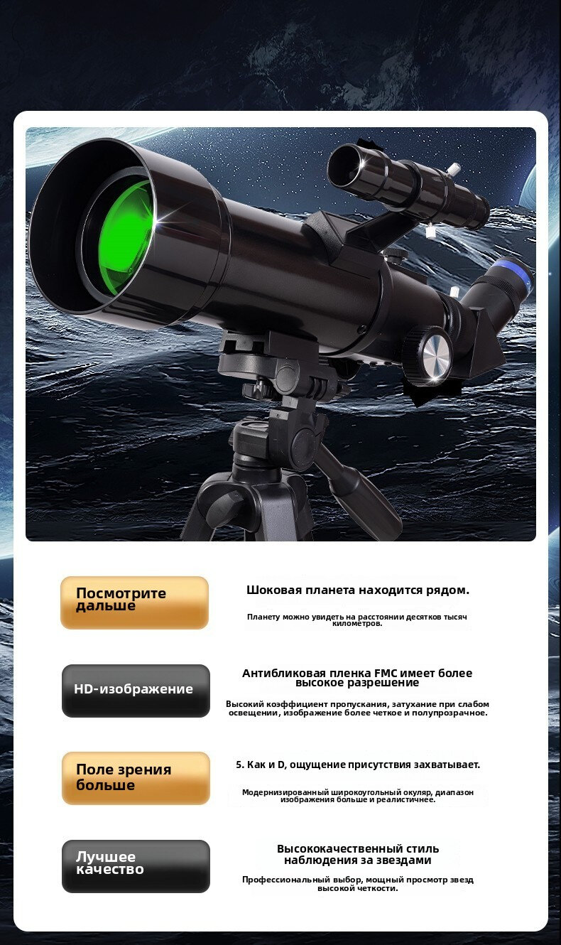 Отзывы на Телескоп астрономический 70мм с треногой для наблюдения за звездами и природой — рефрактор для дома
