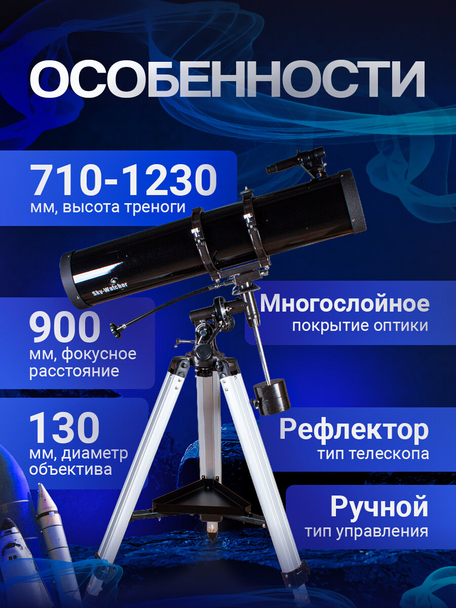 Телескоп на штативе Sky-Watcher BK 1309EQ2 диаметр 130 мм, фокусное расстояние 900 мм, макс. увеличение 260 крат информация: