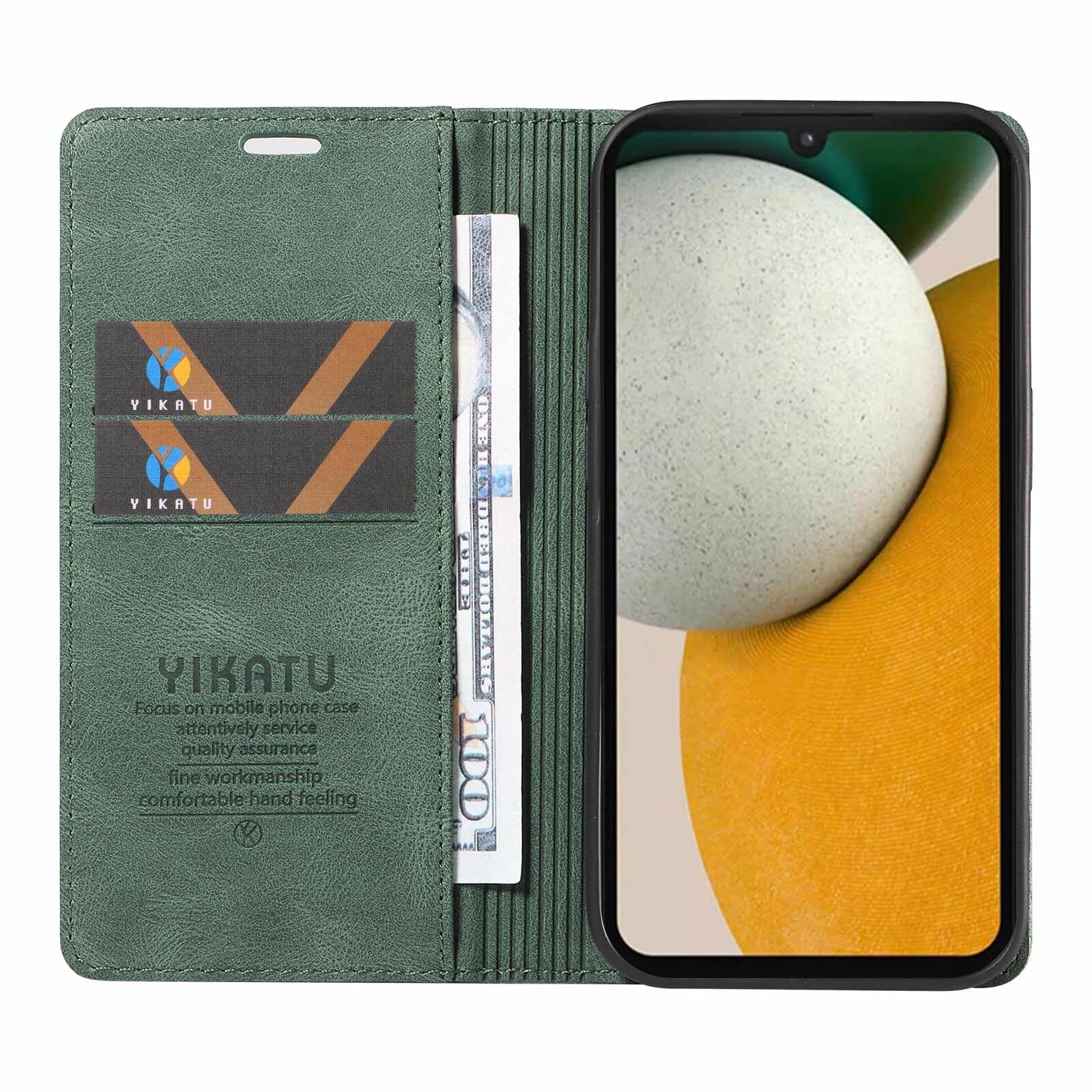 YIKATU Кожаный чехол для Samsung Galaxy A15 (Самсунг Галакси А15) визитницей из экокожи книжка информация: