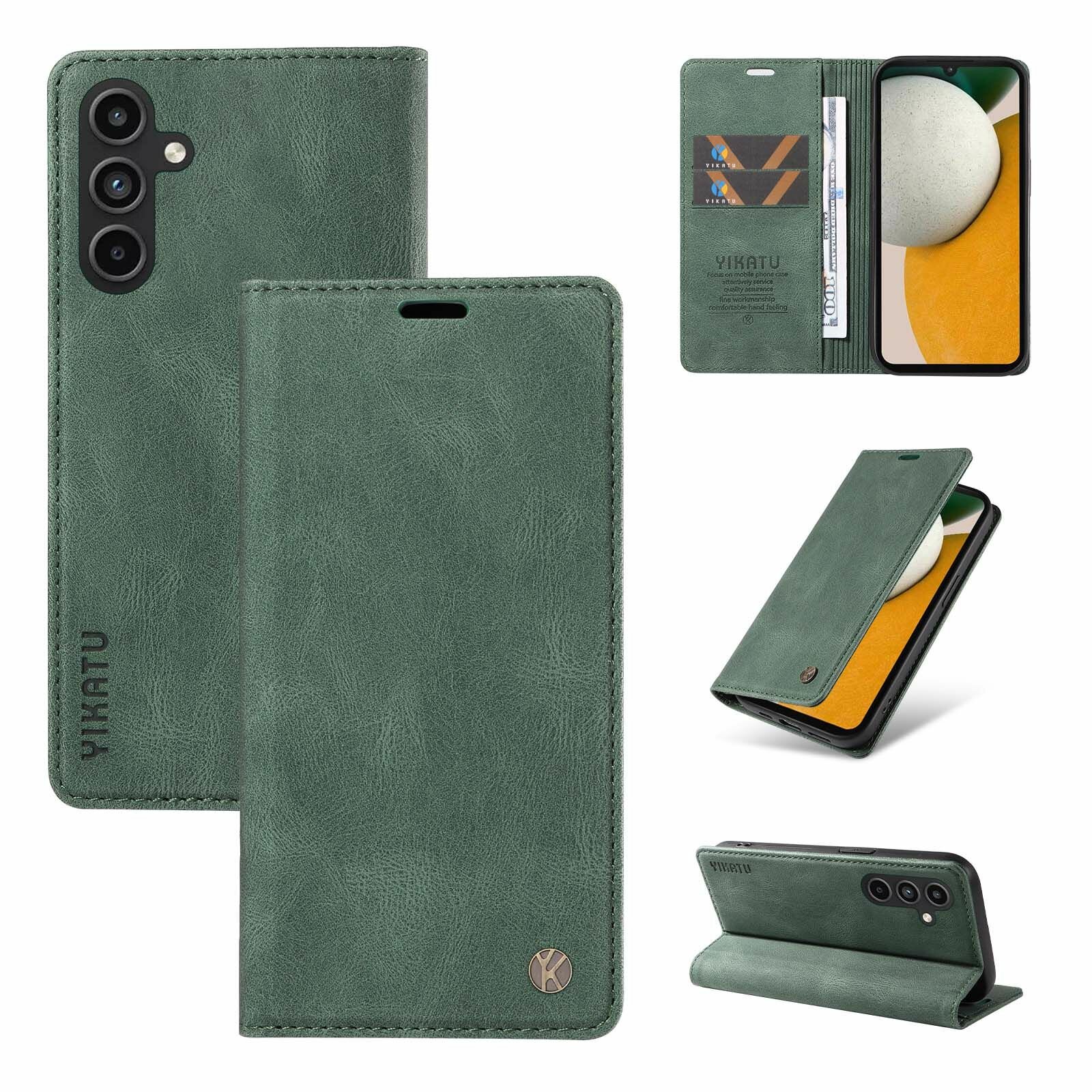 10 цен на YIKATU Кожаный чехол для Samsung Galaxy A15 (Самсунг Галакси А15) визитницей из экокожи книжка
