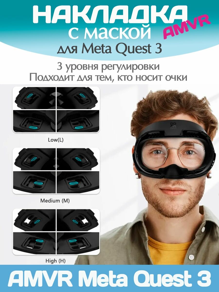 AMVR Маска для Quest 3 с 2 накладками / Лицевой интерфейс для Квест 3 информация: