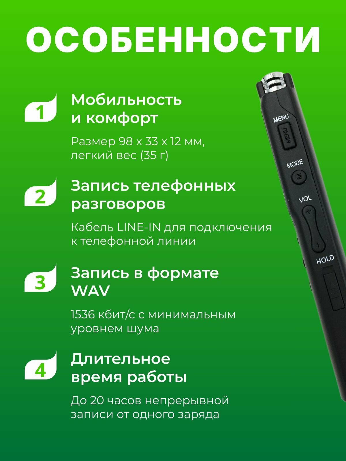 Диктофон Soroka-15.3 (mini) (E89531DI) + 2 подарка (microSD 32Gb и Power-bank) - автономная работа от аккумулятора до 83 часов - удаленный диктофон