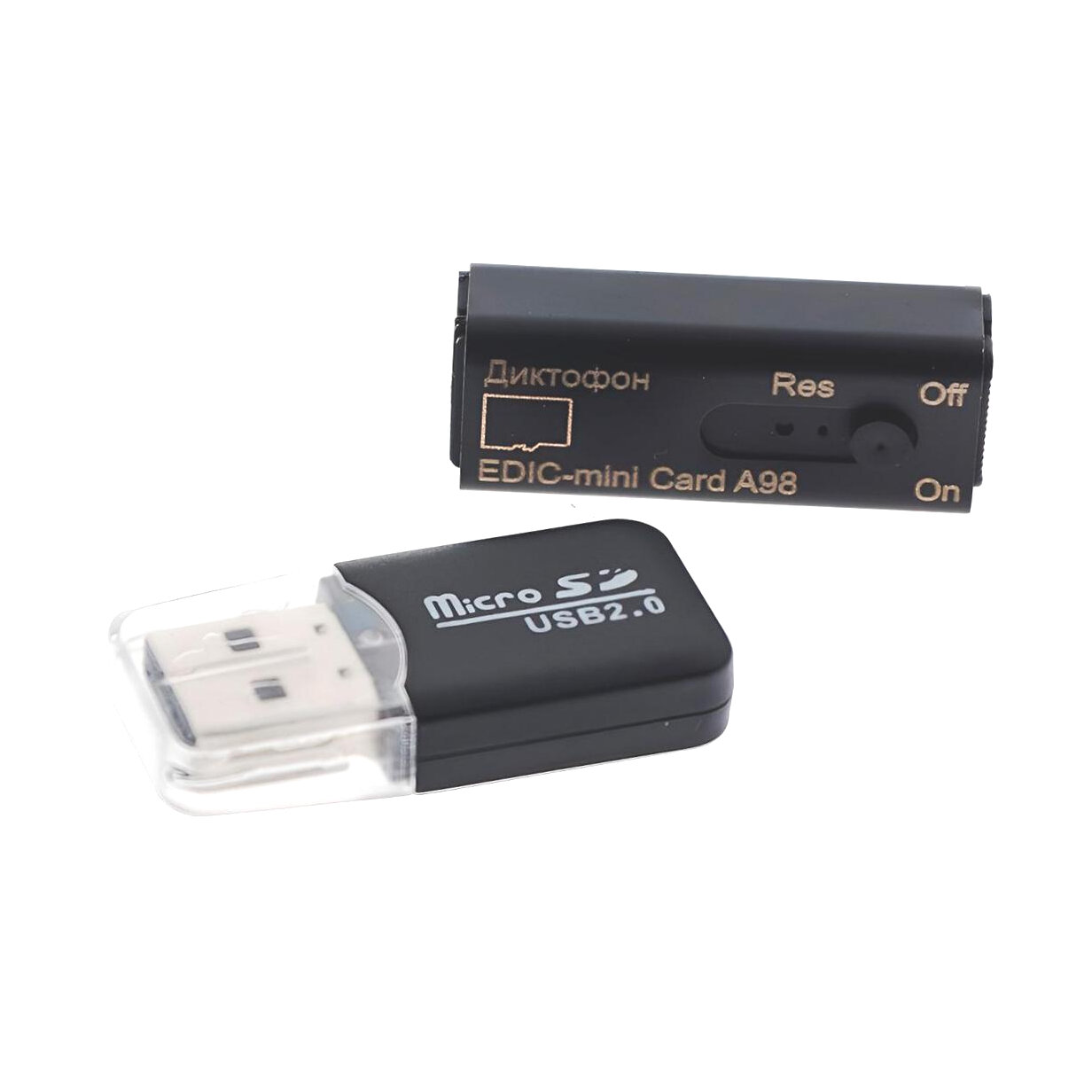 Цифровой мини диктофон Edic-mini A98 CARD (Y10869IDE) + 2 подарка (microSD и Power-bank) - автономная работа до 40 часов - диктофон для записи разго информация: