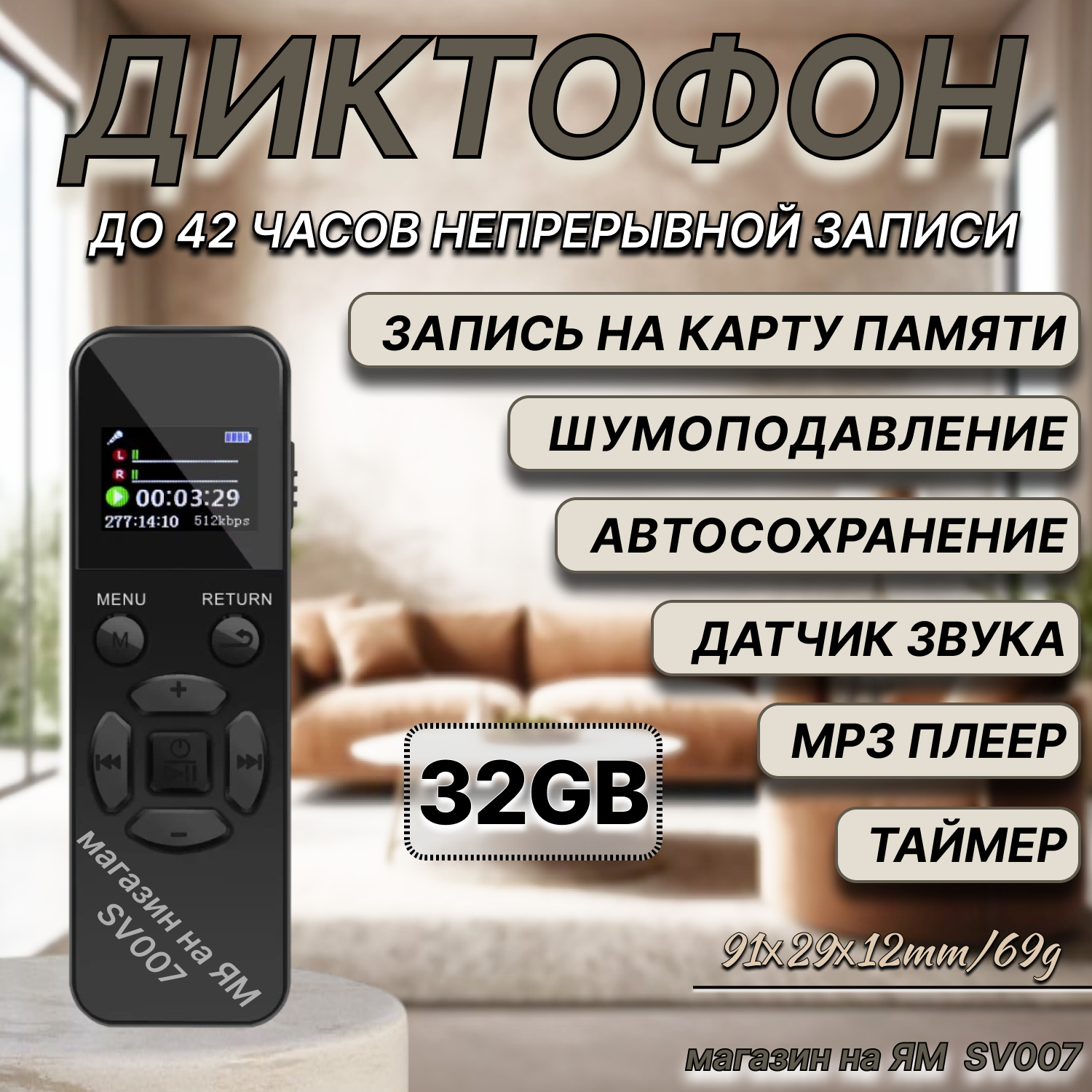 Отзывы на Цифровой диктофон SV58, память 32 GB, датчик звука, запись во время зарядки/ Мини диктофон с MP3-плеером
