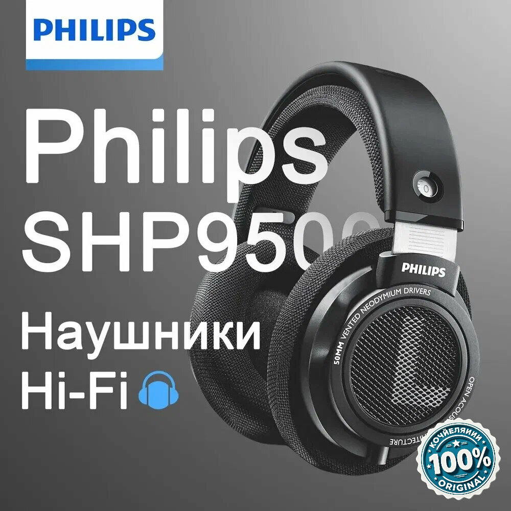 10 цен на Наушники Philips SHP9500, Hi-Fi, открытые, позолоченный переходник, чёрные