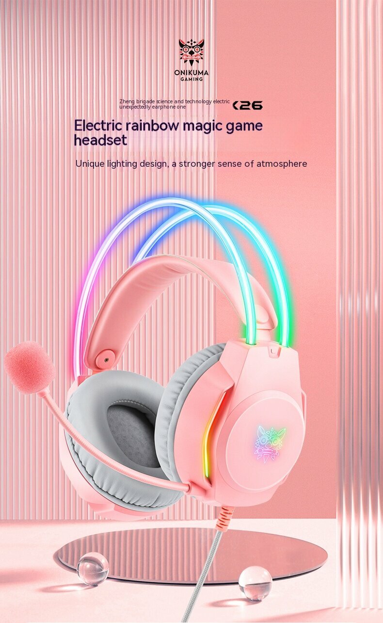 Игровые наушники ONIKUMA X26, 3.5 мм, RGB подсветка (Розовый Олень)