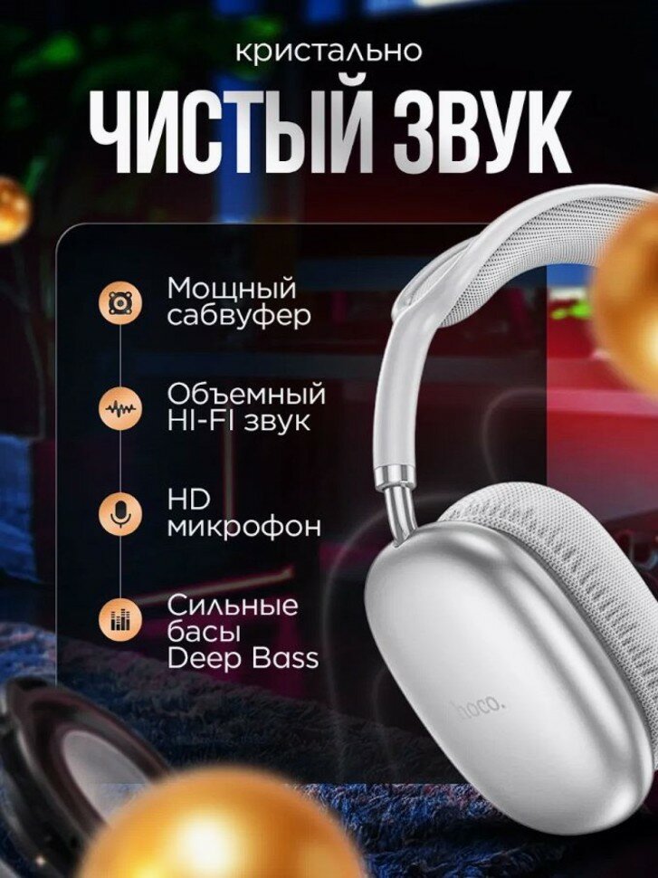 Отзывы на Стереонаушники Bluetooth полноразмерные Hoco Air Music Light W35 V5.3/40ч белый