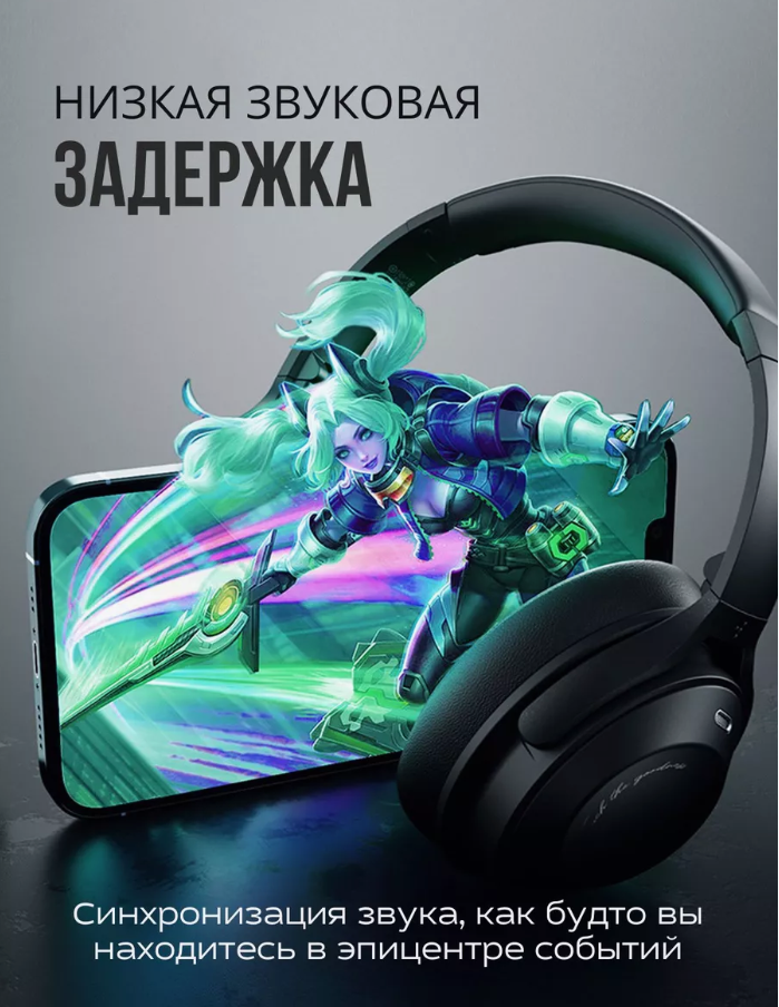 Отзывы на Наушники беспроводные большие, полноразмерные, накладные, Fingertime, с шумоподавлением, ANC, с микрофоном, игровые, Bluetooth 5.3, AUX кабель, черный, LED