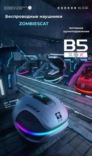 Наушники беспроводные, ZOMBIESCAT B5 c активным шумоподавлением ANC+ENC, игровые информация: