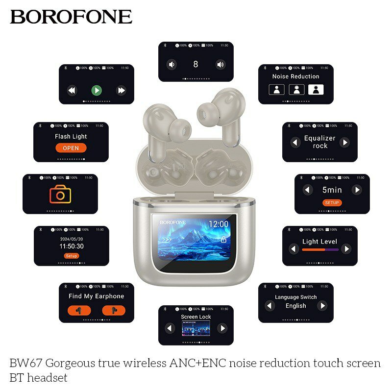 Беспроводные наушники BT с сенсорным экраном и шумоподавлением ANC+ENC BW67 серебро информация: