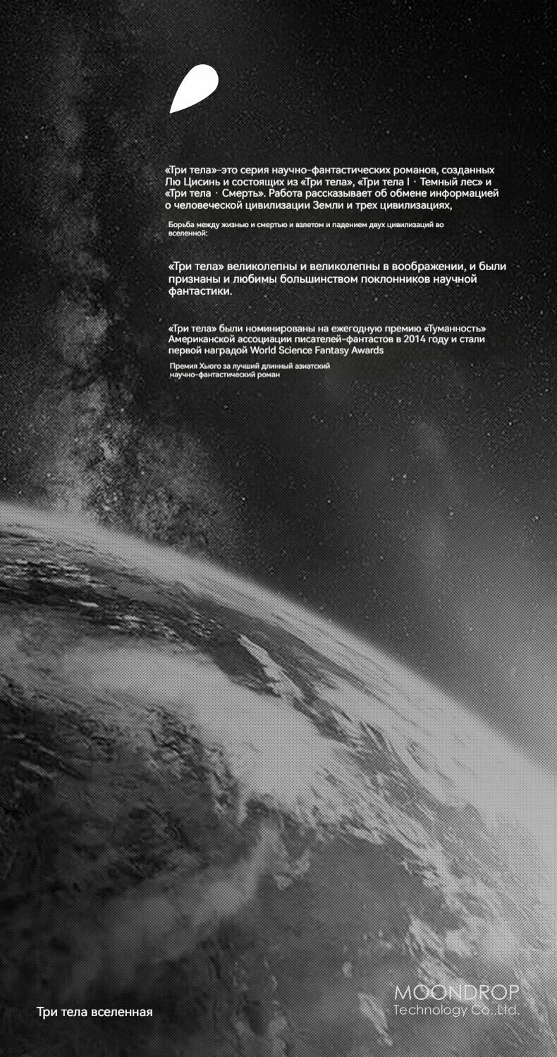 Moondrop,Вселенная из трех тел × Moondrop, Hi-fi, наушники-вкладыши, разъем usb-c, 1,2 м, черный информация: