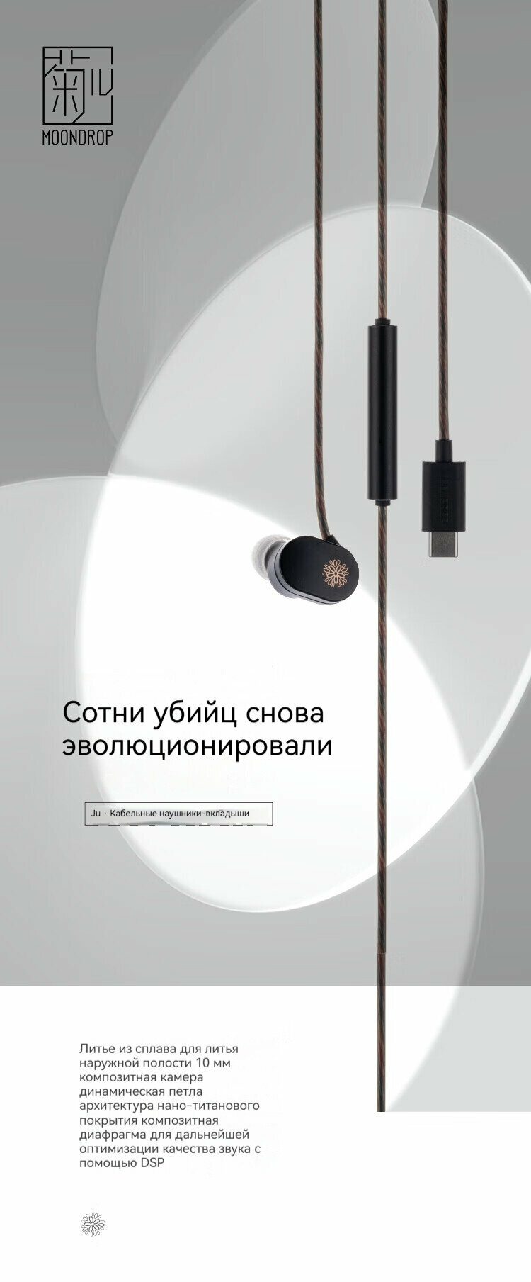 Moondrop,Вселенная из трех тел × Moondrop, Hi-fi, наушники-вкладыши, разъем usb-c, 1,2 м, черный 8 750 ₽