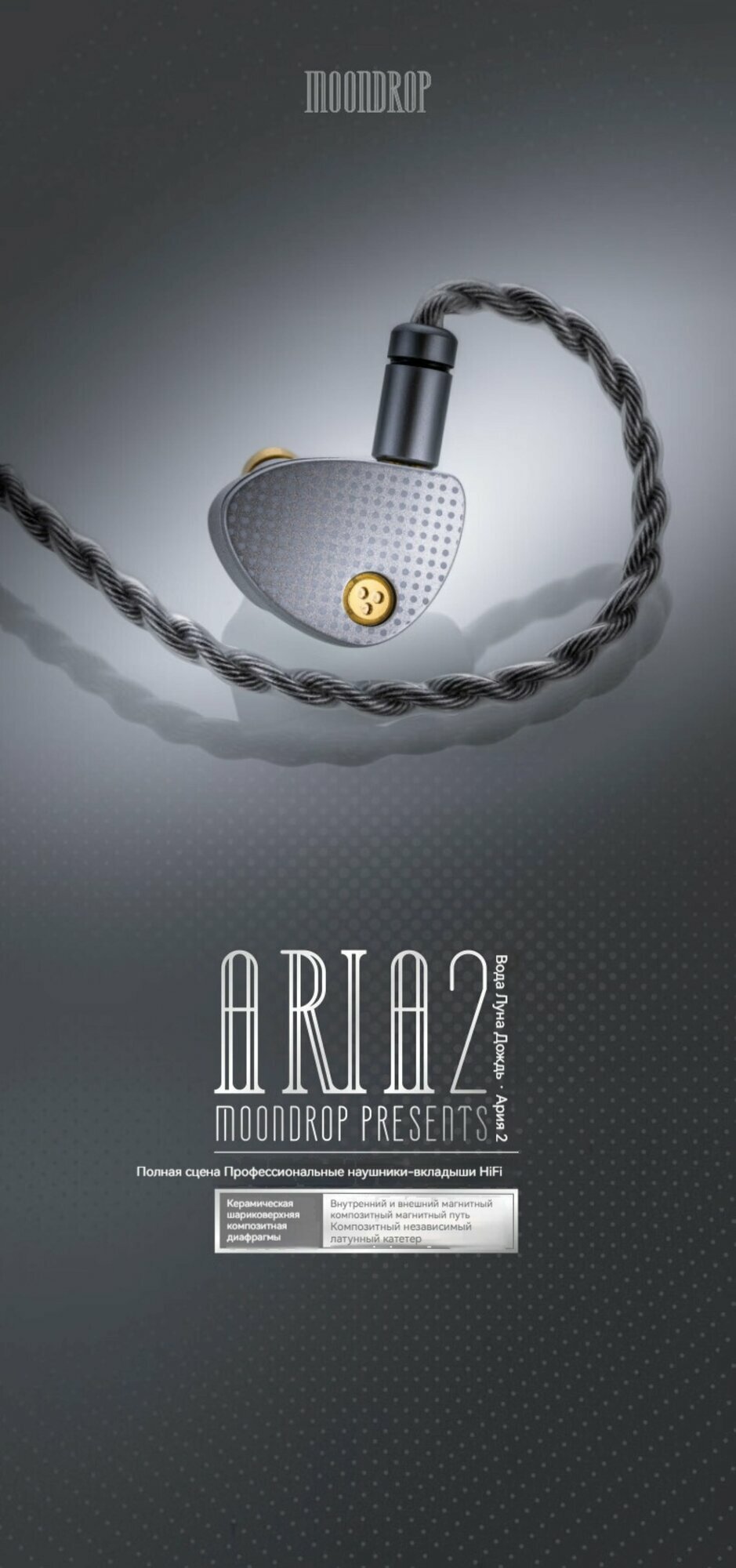 Moondrop,Aria2, белый, hifi-гарнитура-вкладыш, 33 Ом, ipx5, разъем 3,5 мм, информация: