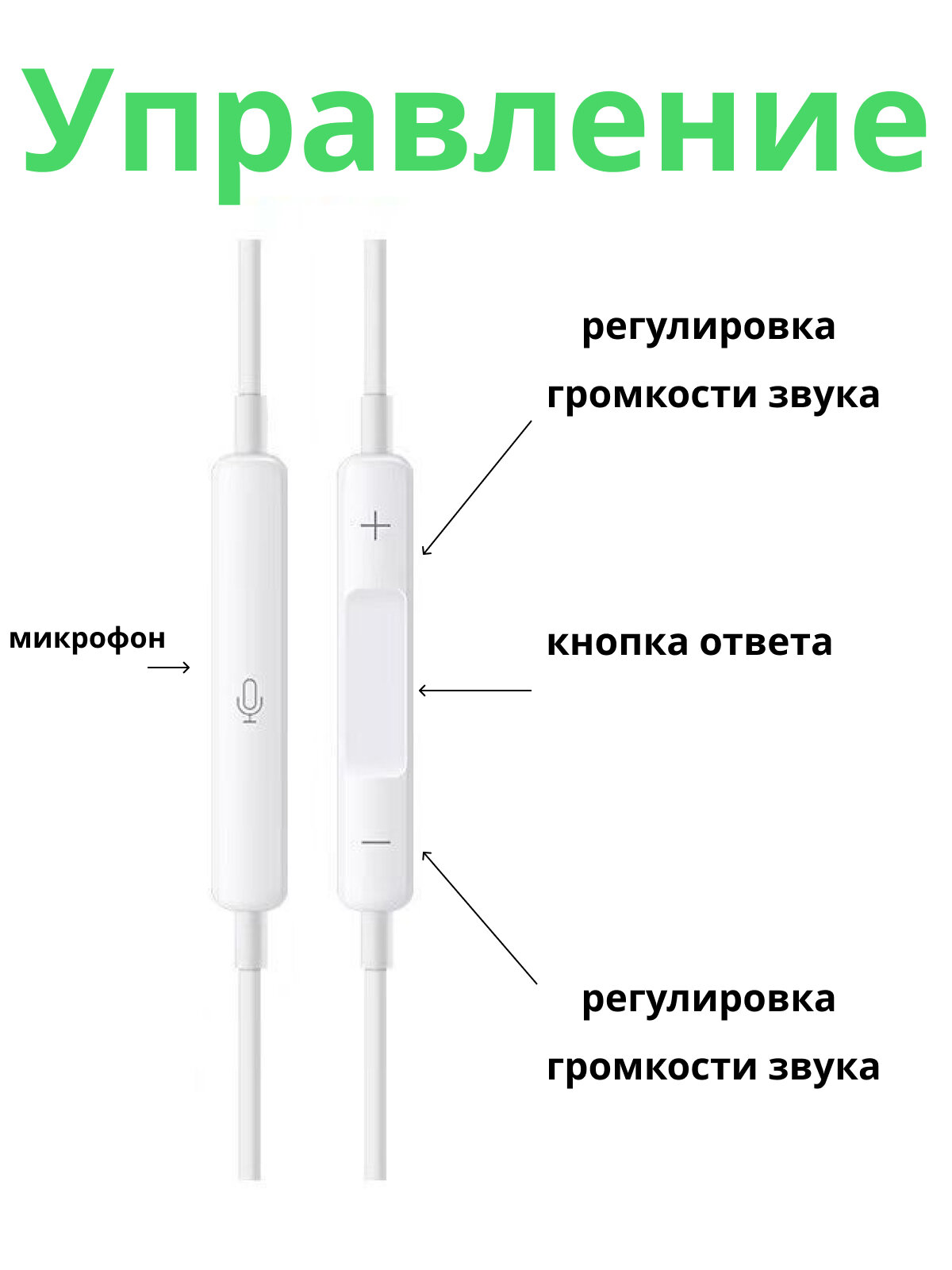 Отзывы на Наушники проводные для телефона, jack 3.5мм / Вкладыши с микрофоном, пластик, белые