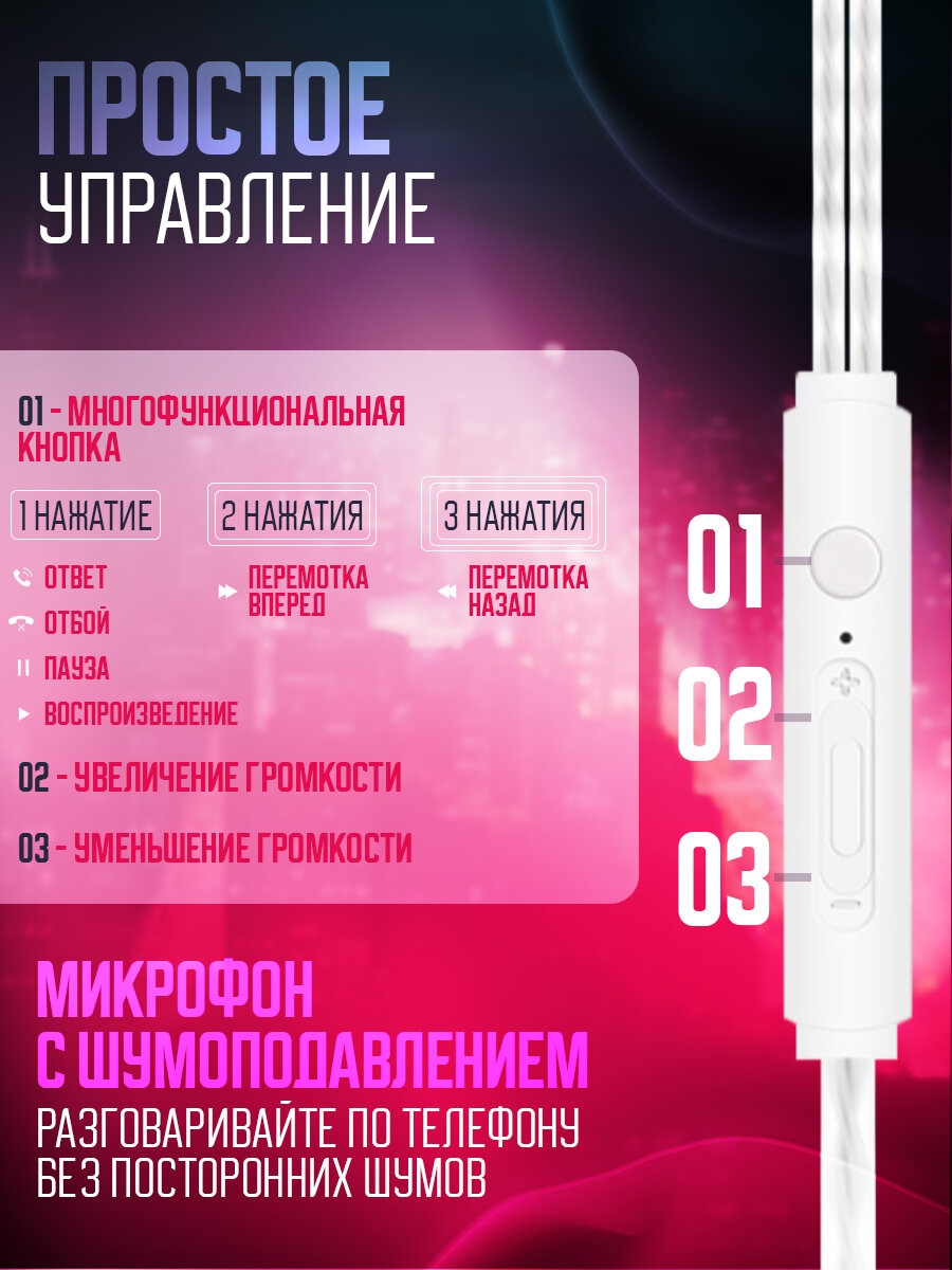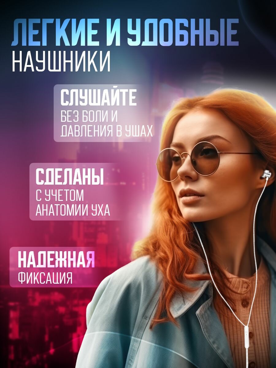 Наушники проводные для телефона, jack 3.5мм / Вакуумные с микрофоном, пластик, белые 450 ₽