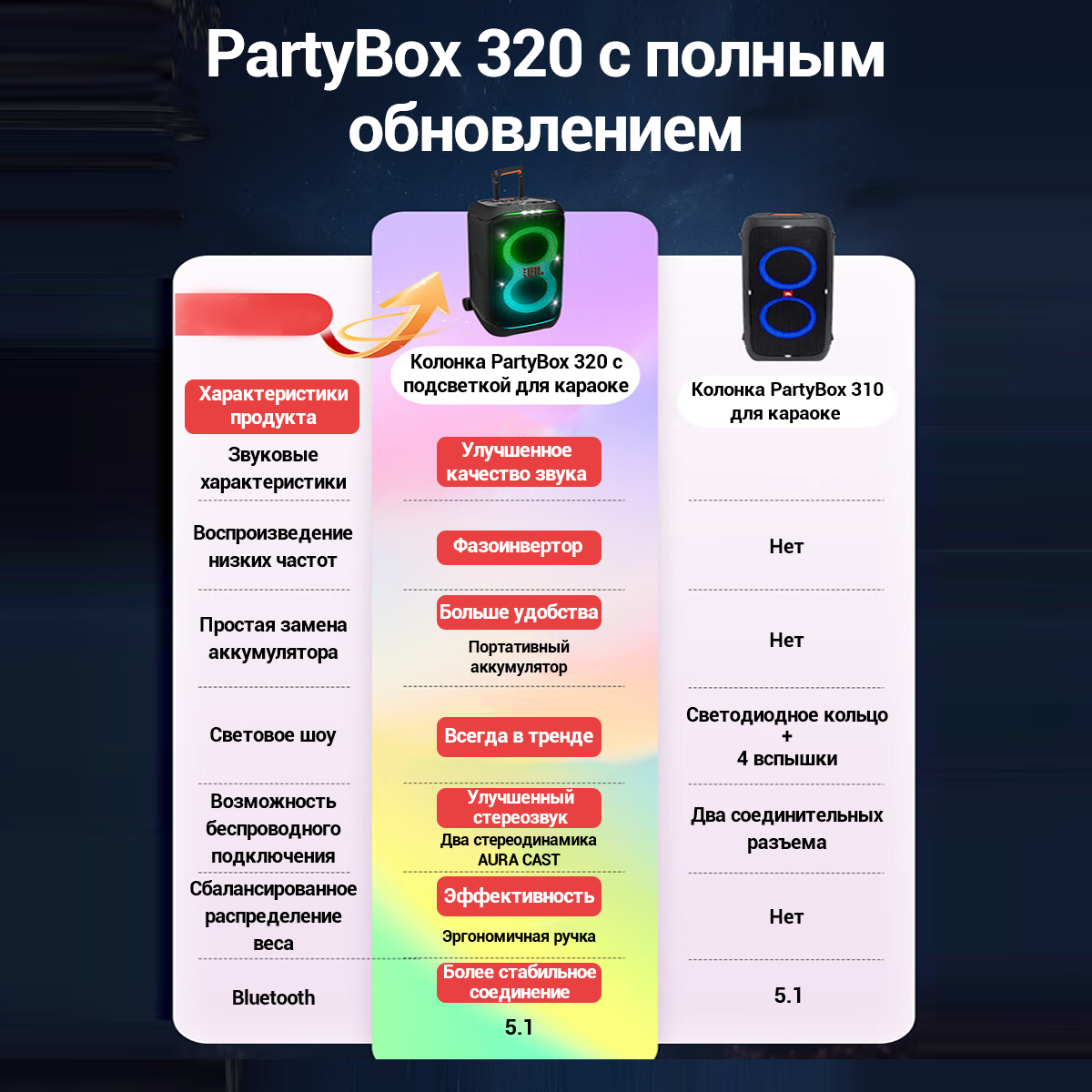 Портативная мультиплеерная стерео колонка JBL PartyBox 320,с продолжительностью работы до 18 часов,100% Оригинал информация: