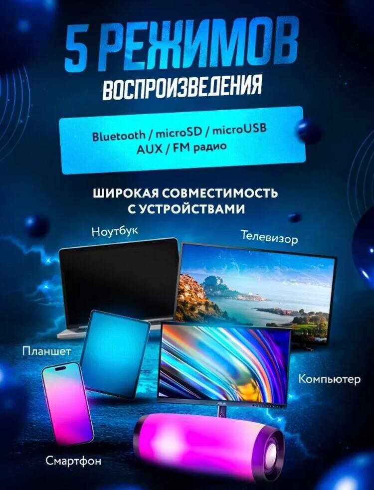 Отзывы на Портативная беспроводная блютуз колонка с подсветкой , чистый звук ,10 Вт , черный