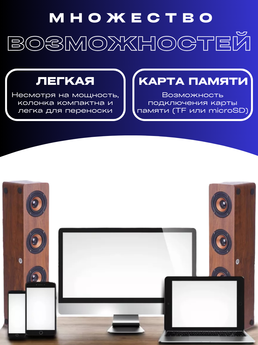 Компактная Bluetooth-колонка с насыщенным звучанием мощная настольная информация: