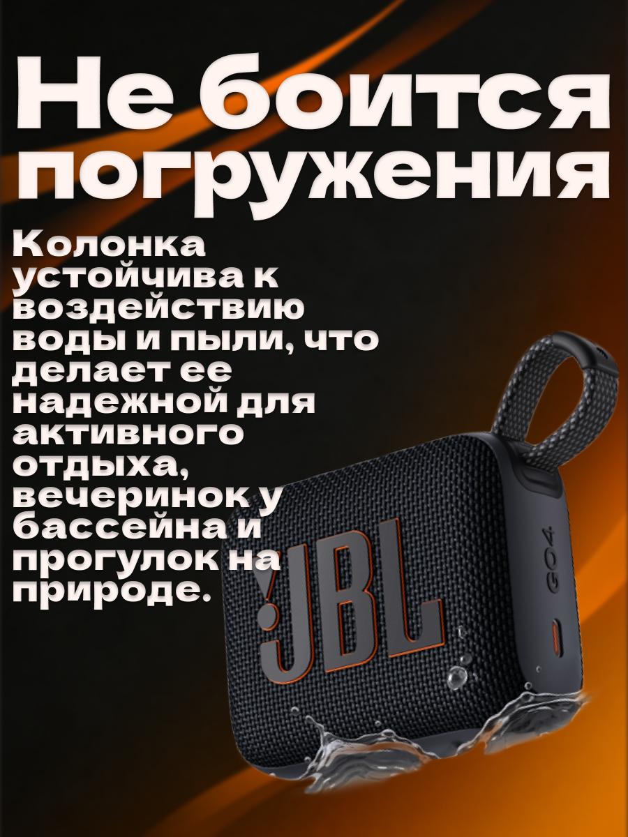 Портативная колонка JBL Go 4, черная, влагозащищенная, автономная работа до 7 ч информация: