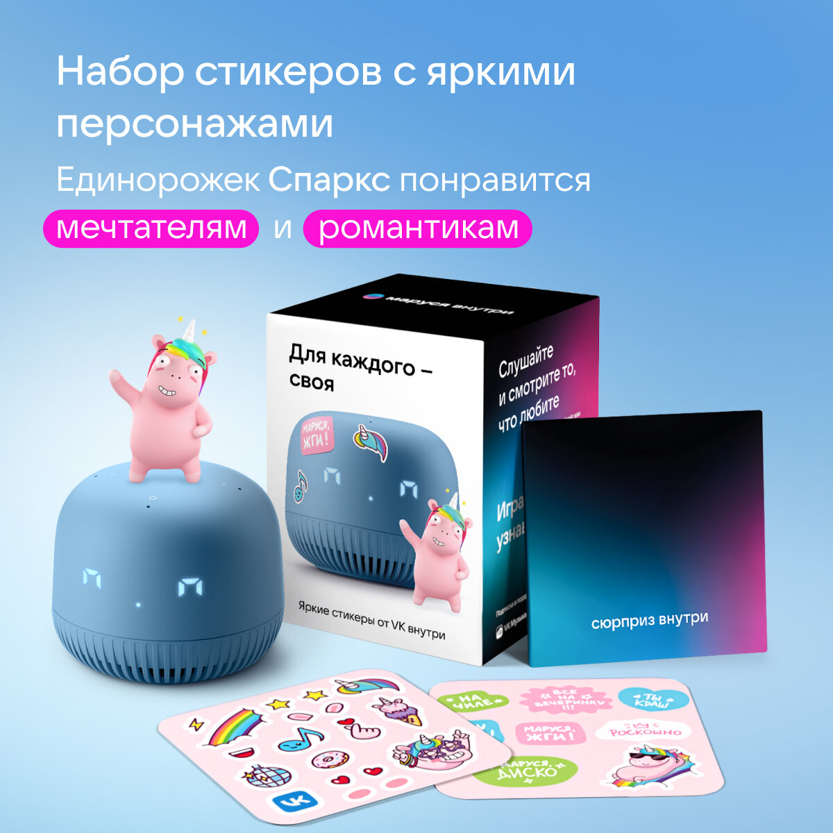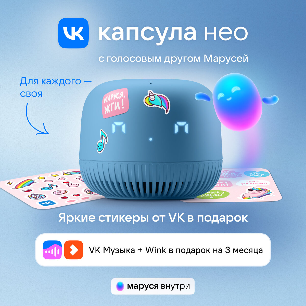Умная колонка VK Капсула Нео с голосовым помощником Марусей, цвет Синий, 3 месяца подписки VK + Wink в подарок информация: