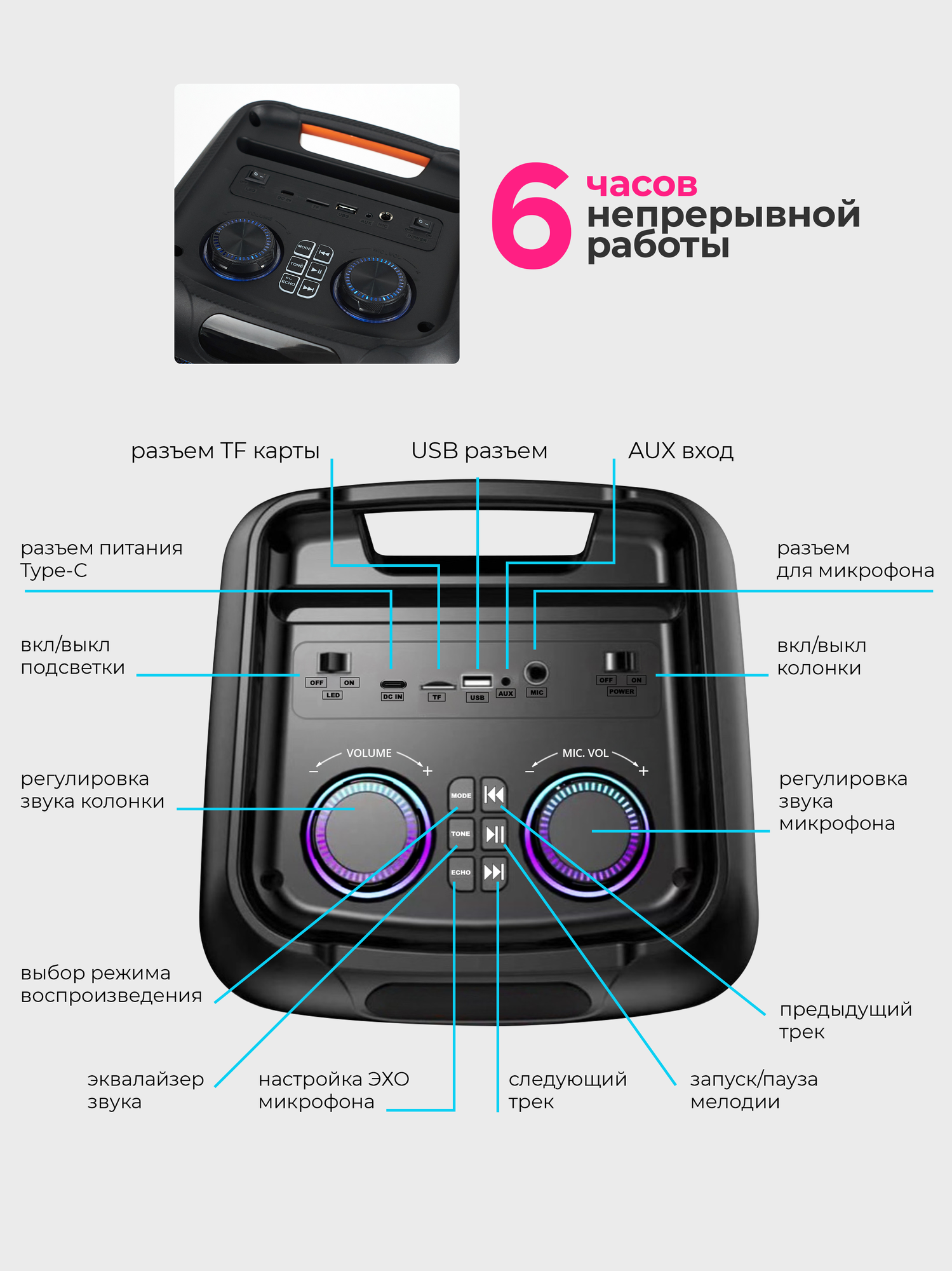 Беспроводная портативная колонка NOIR-audio MAX-100 с проводным микрофоном, караоке, блютуз и светомузыкой информация: