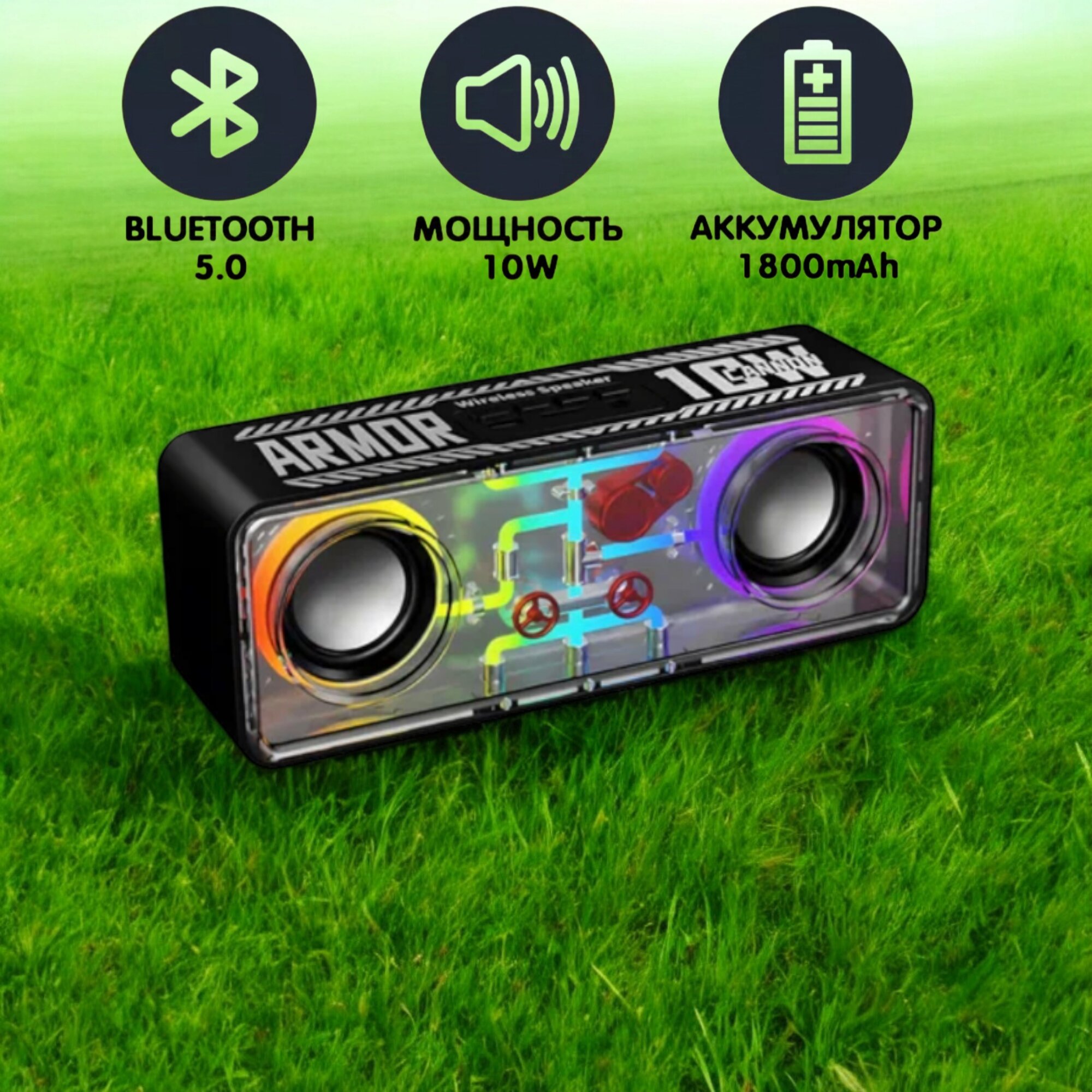 10 цен на Колонка беспроводная музыкальная, Bluetooth портативная, LED подсветка, черная VITtovar